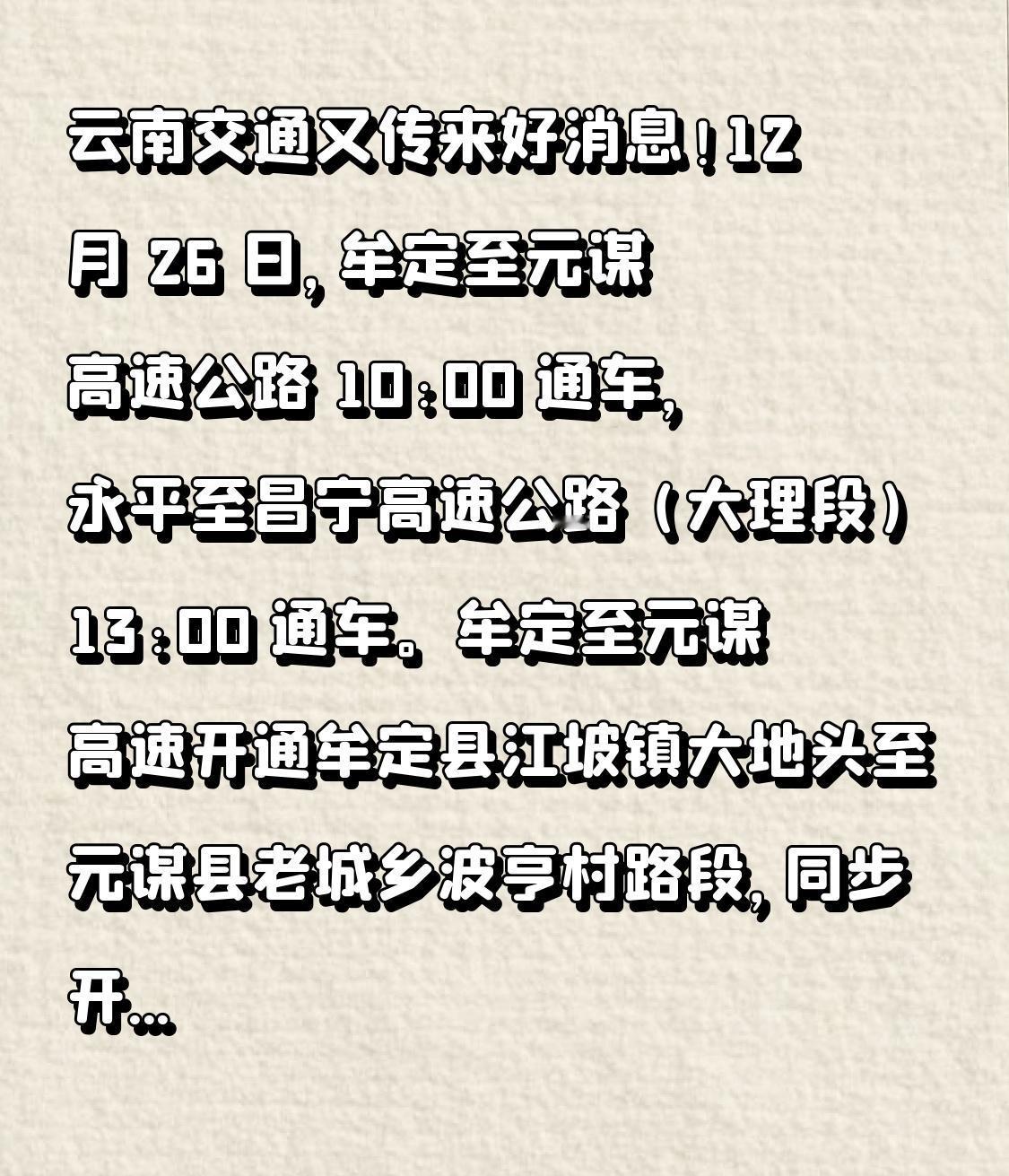 云南交通又传来好消息!【好消息!云南两条高速公路即将同日通车】12月26