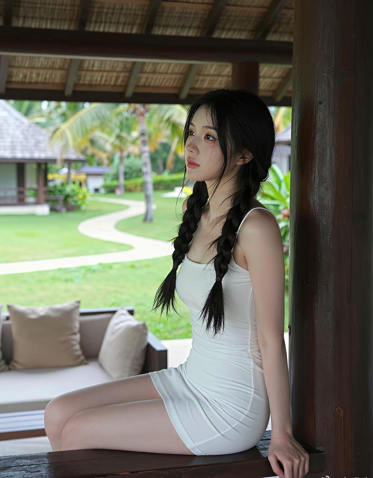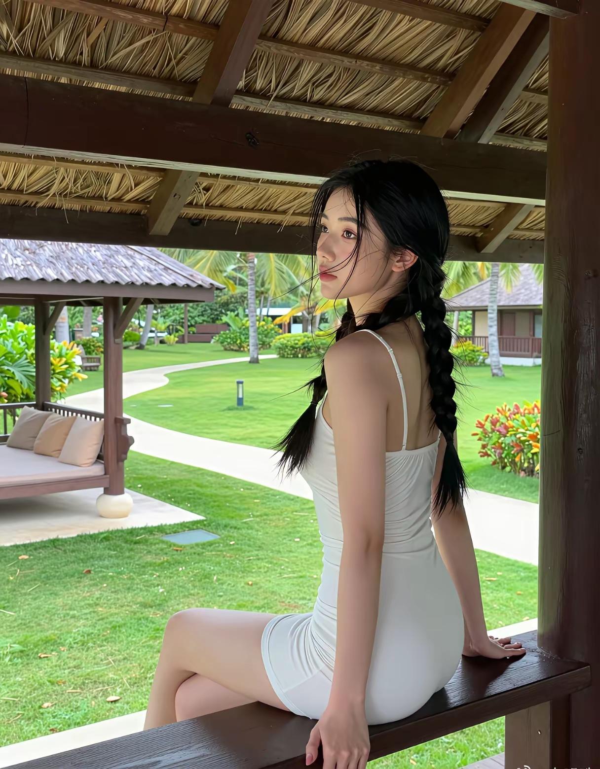《临江仙·小亭观处》 碧瓦青檐遮午日,亭边草色匀铺。 素衣斜倚木栏初。 辫垂春涧水,眸转远山图。 风动罗裙轻似雪,闲看云影萦途。 鹧鸪声里梦踟蹰。 晴光分碎影,凉思入冰肤。