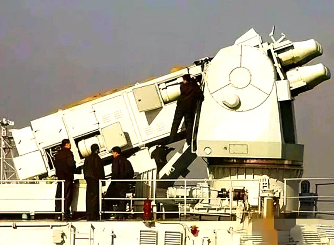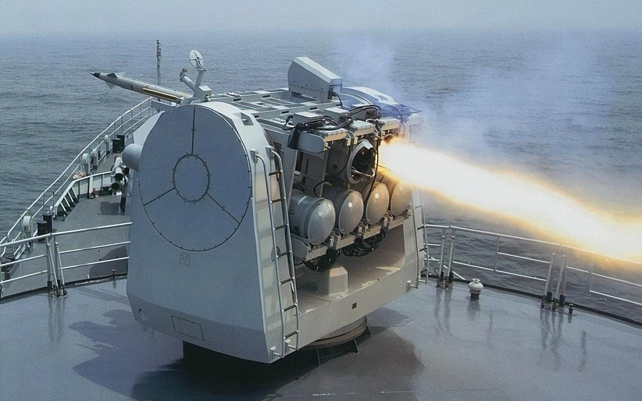 曾经是世界上最好的短程舰空导弹 ,海红旗-7舰空导弹 。 海红旗-7最小射程只有不到500米,可拦击最低10~15米的掠海来袭反舰导弹,能够同时使用三种不同的引导模式攻击三个目标。最大射程约15公里,作战高度为6000米,甚至能够拦截精确制导武器如哈姆反辐射导弹等目标。