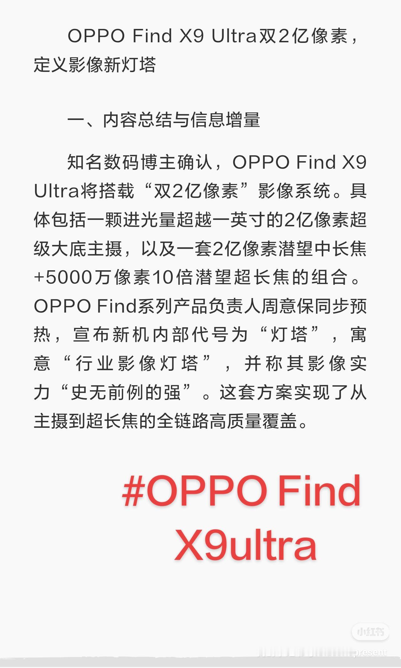 OPPOFindX9Ultra双2亿像素,定义影像新灯塔 一、内容总结与