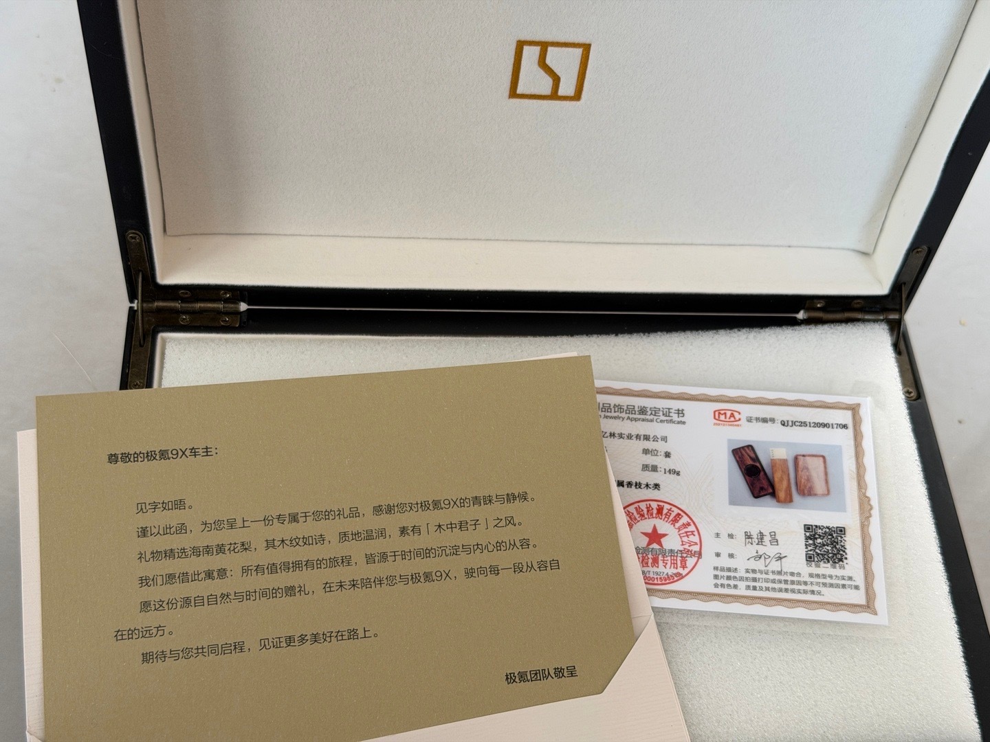 收到了极氪9X 的“老登三件套”黄花梨做的,车主都会送。猜猜都是干嘛用的?