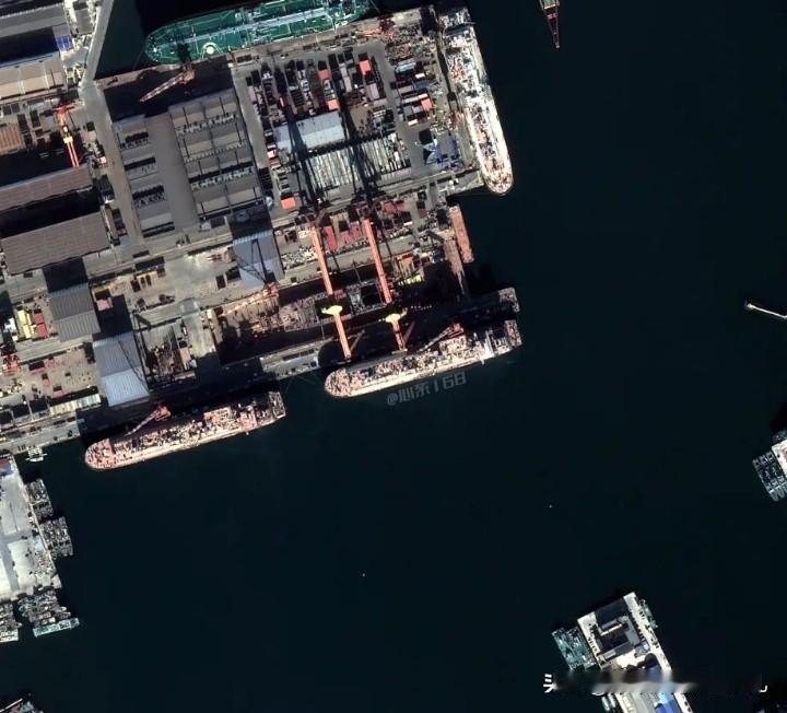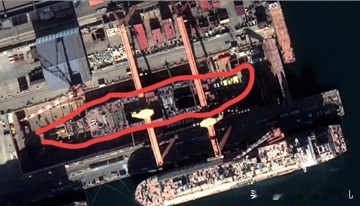 达利安22号最新的俯视图...已经能看出大家伙的样子来了!! 按照这个节奏,预计2026年春节(2月14日起放假)前就能实现船体全部合拢,这个速度放在全球都算顶尖水平! 这次咱们没用常规思路,而是直接把动力舱段和机库分段模块嫁接,打破了“先合拢船体再装上层机库”的老规律。 而且机库的直壁设计,既借鉴了美式航母大机库的优势,又保留了苏式航母强防护的特点,妥妥的“取其精华”,中国军工的整合能力真不是吹的...