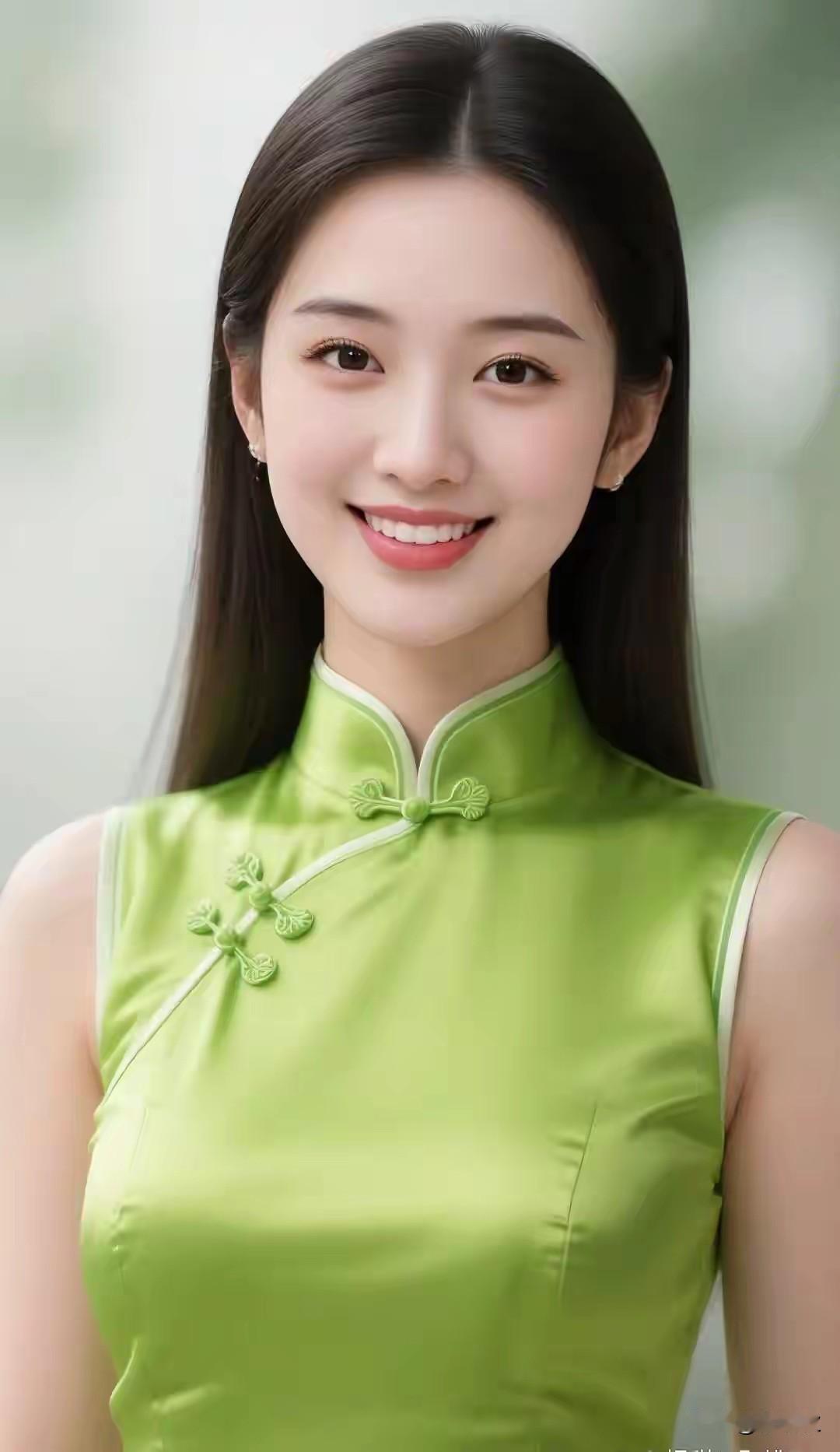 绿色旗袍,东方风韵 出水芙蓉,天姿国色 沉鱼落雁,闭月羞花 天生丽质,国色天香 浅笑嫣然百媚生, 恰似春风拂柳轻。