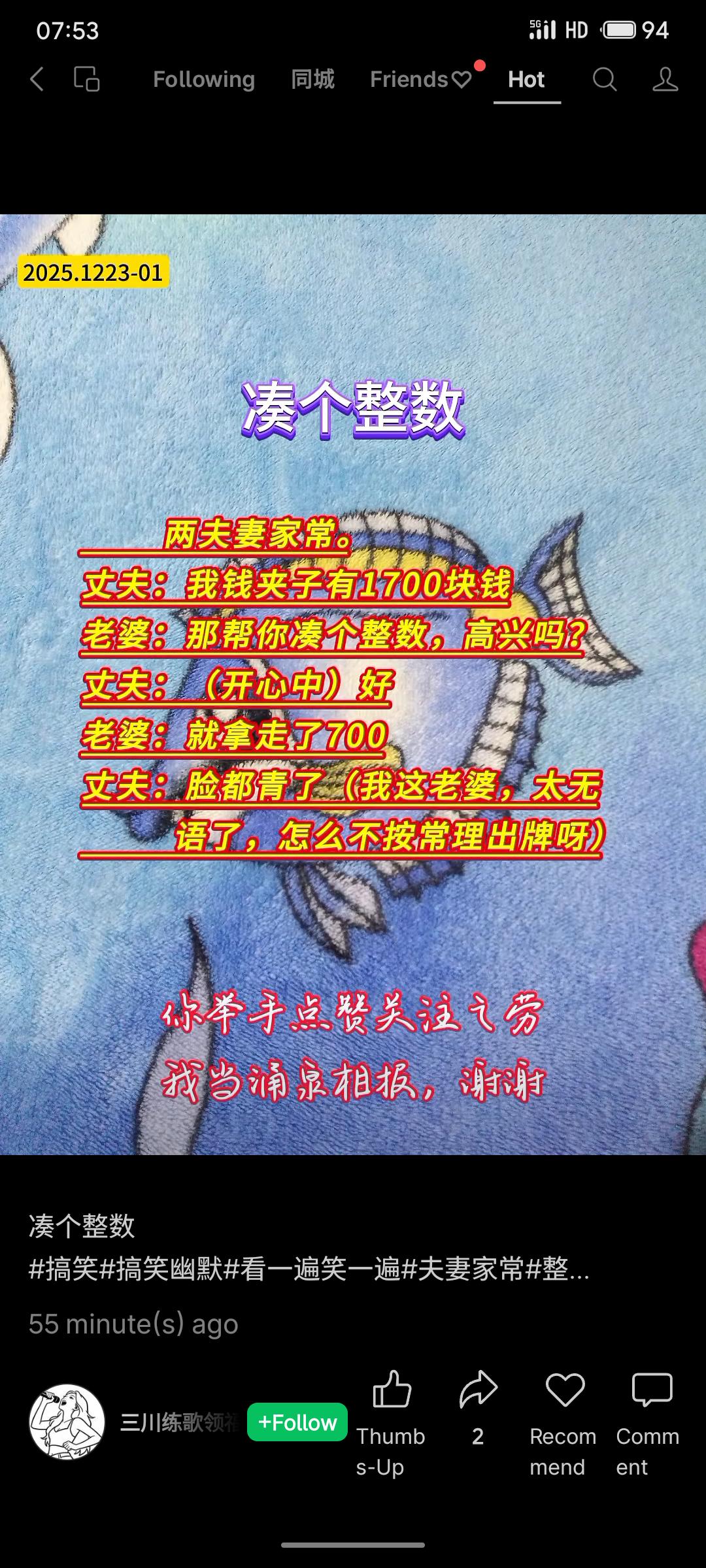 丈夫钱包有1700元,妻子笑称要帮他“凑个整数”。丈夫正高兴,她却拿走700元,留下千元整。丈夫顿时傻眼——原来妻子的“凑整”是反套路减法,让人哭笑不得。