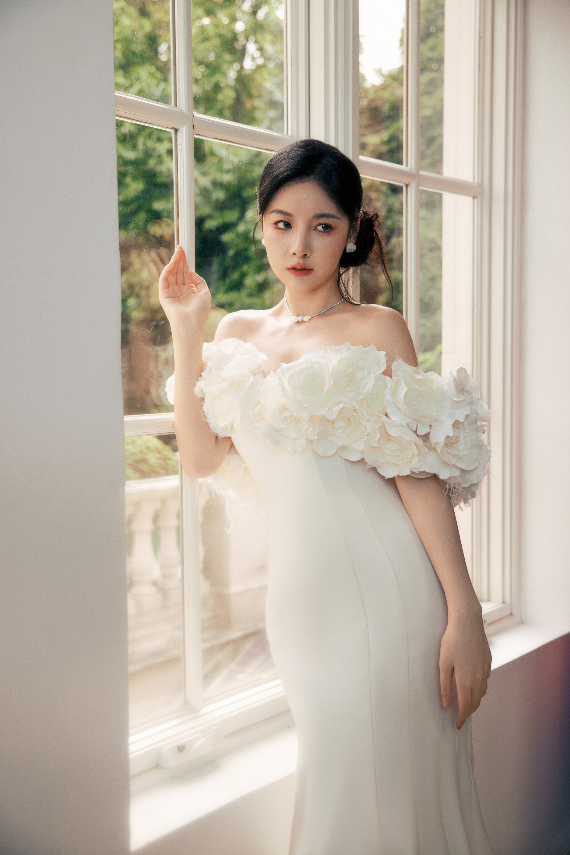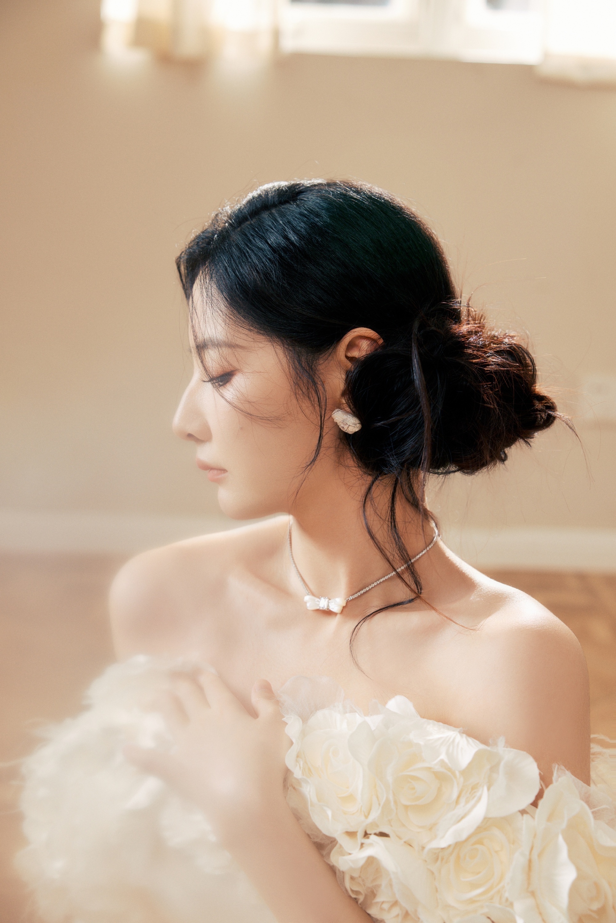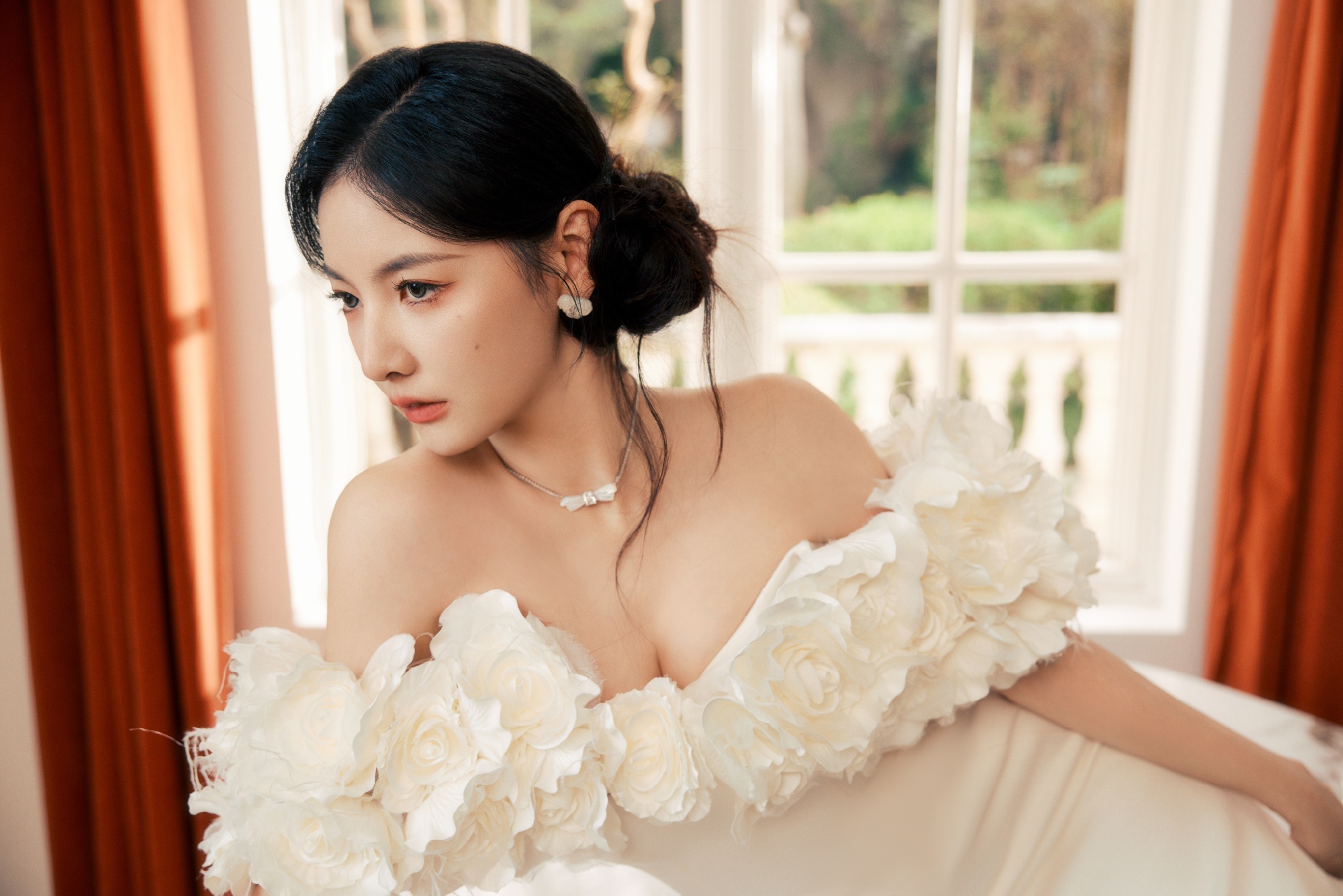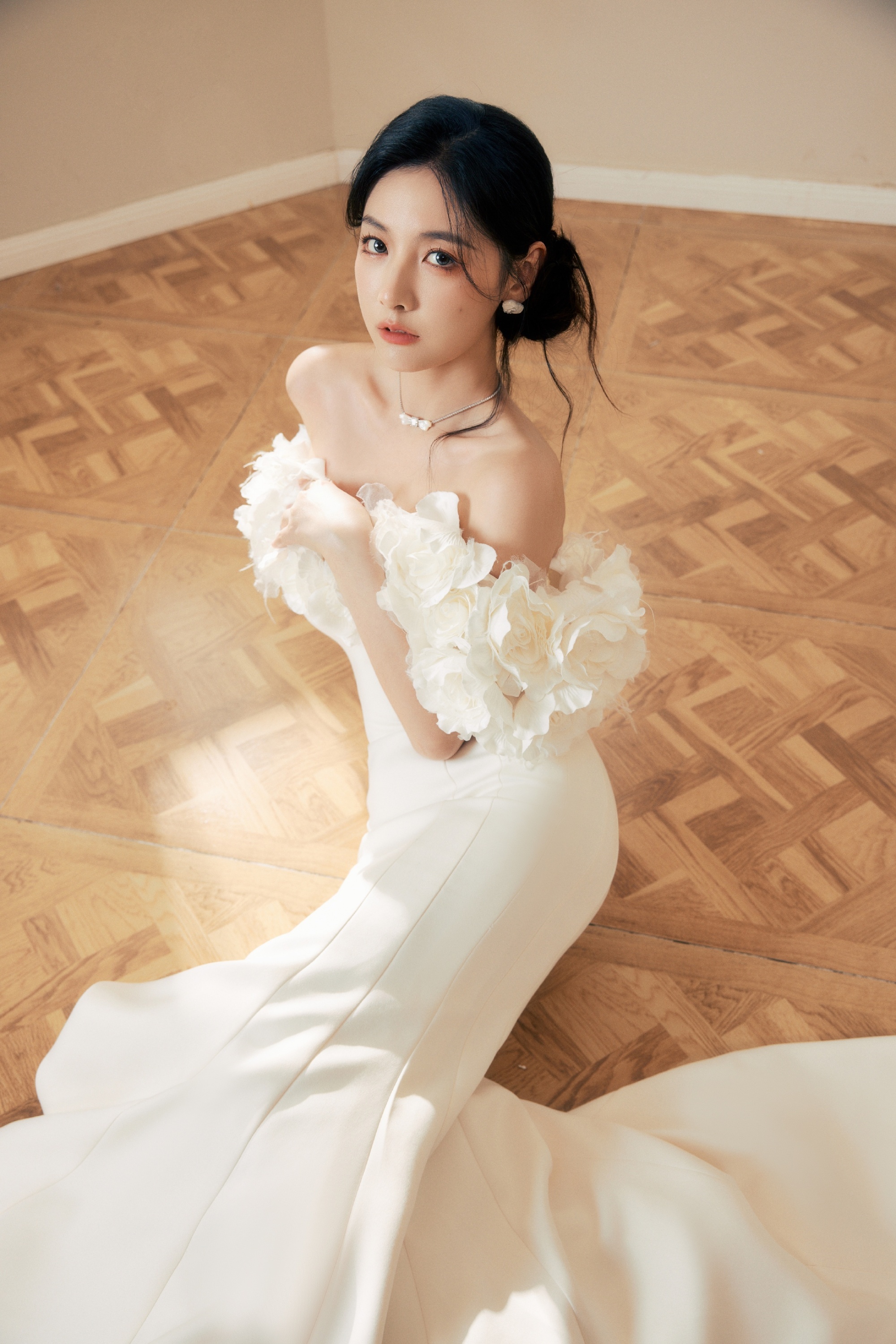 赵粤最新婚纱造型,纯白柔美的小姐姐。赵粤