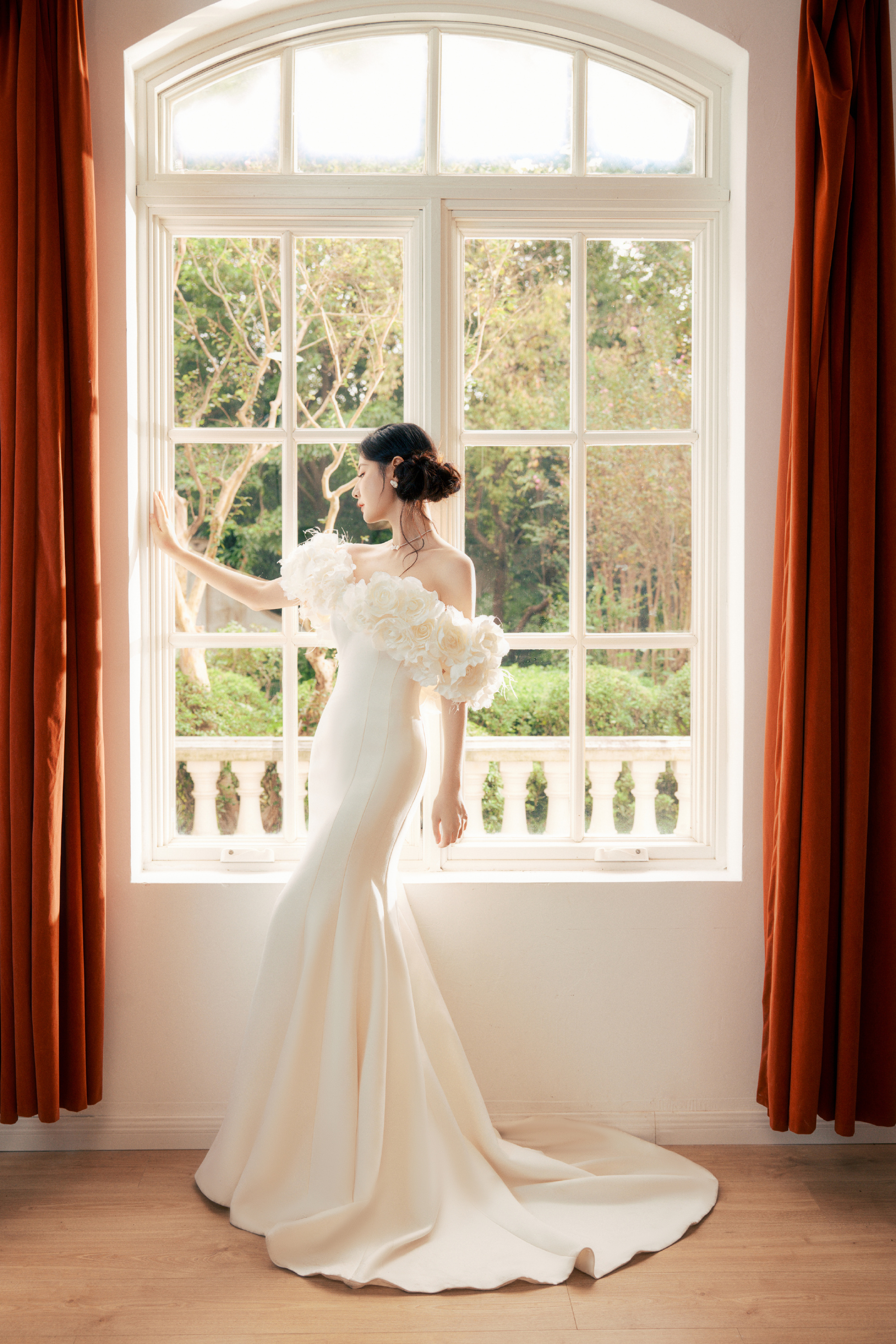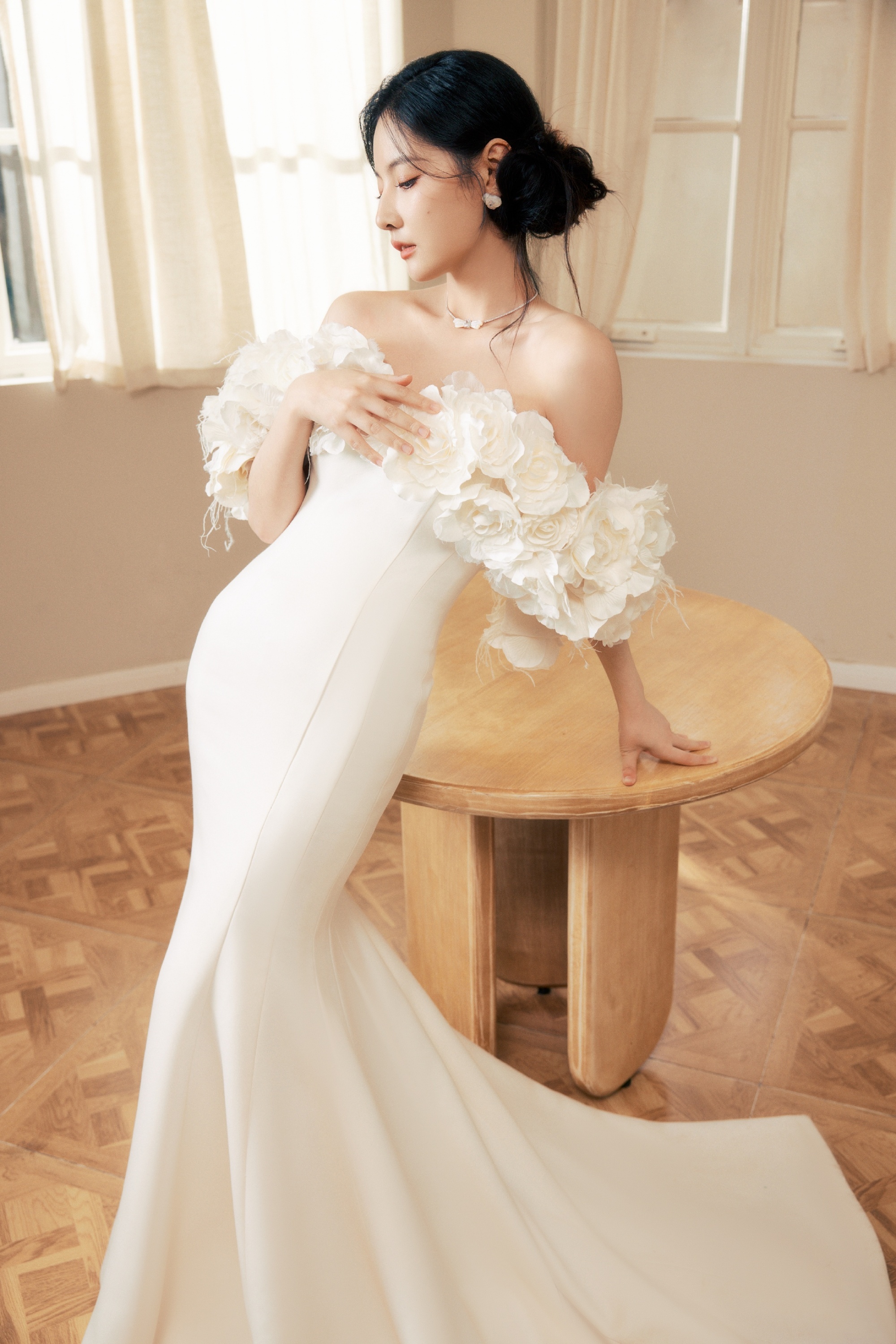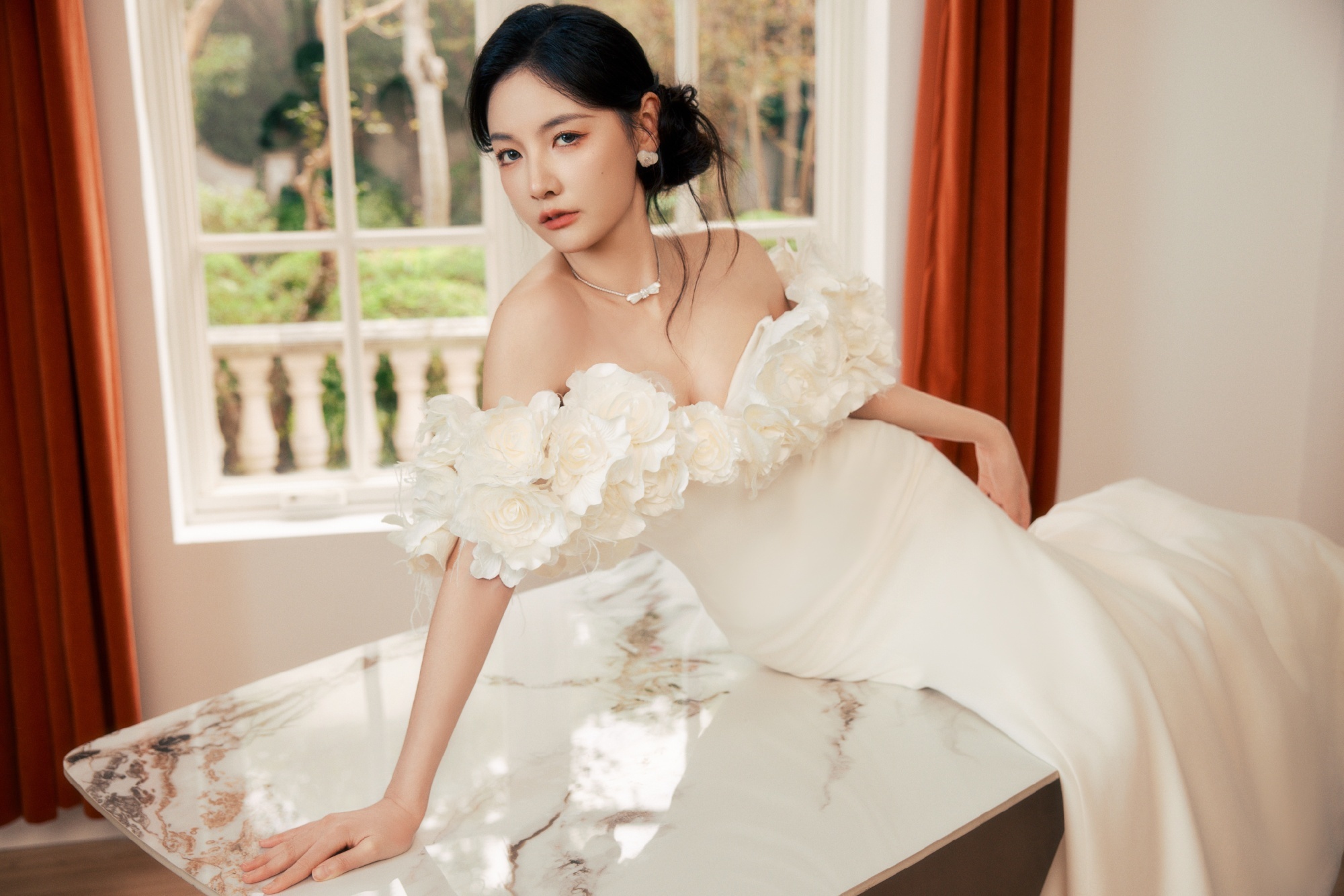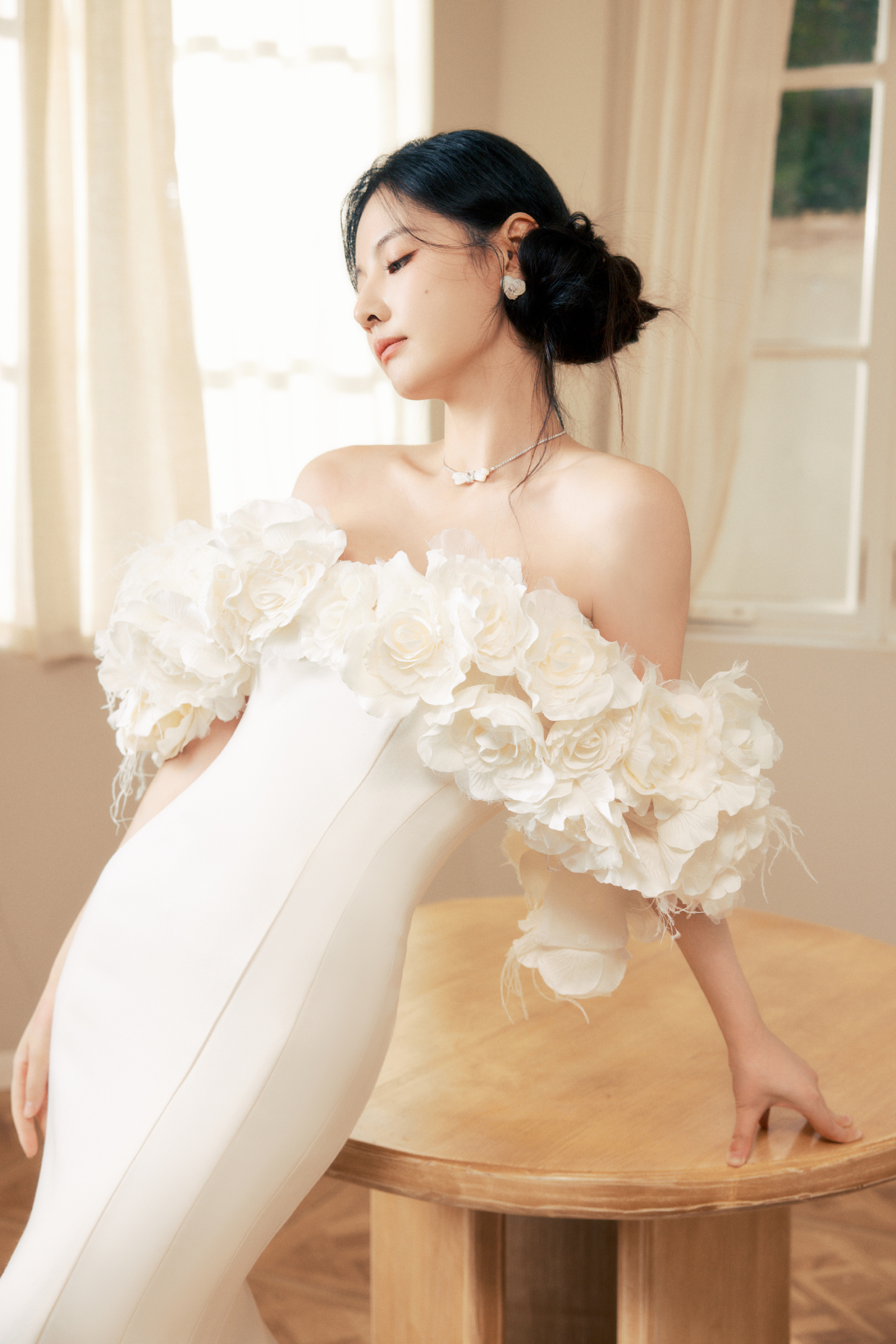 赵粤最新婚纱造型,纯白柔美的小姐姐。赵粤