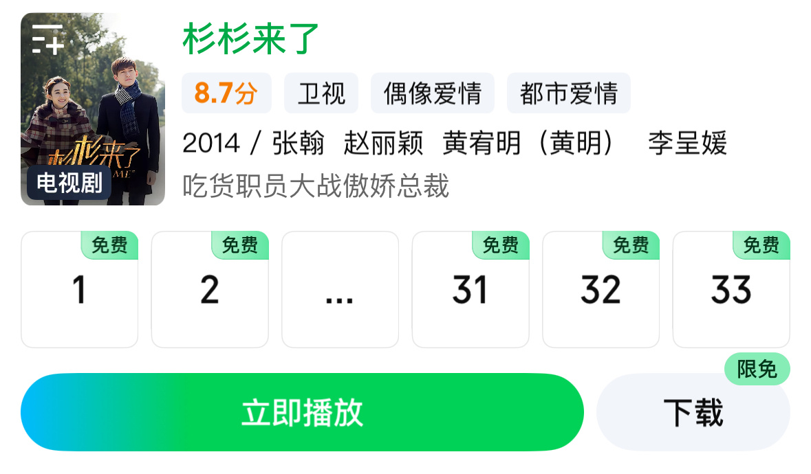 顾漫宇宙全部限免我不行了……《骄阳似我》开播后,顾漫宇宙全部限免了啊啊啊啊啊🐧:杨洋、迪丽热巴《你是我的荣耀》🥝:钟汉良、唐嫣《何以笙箫默》🥝:张翰、赵丽颖《杉杉来了》别问👖为什么不限免因为《微微一笑很倾城》下架了🙊🙊🙊
