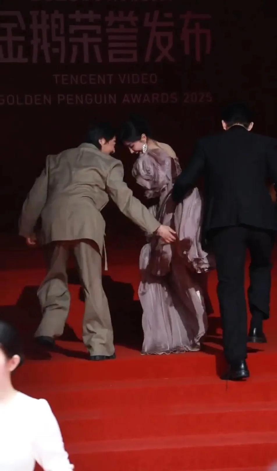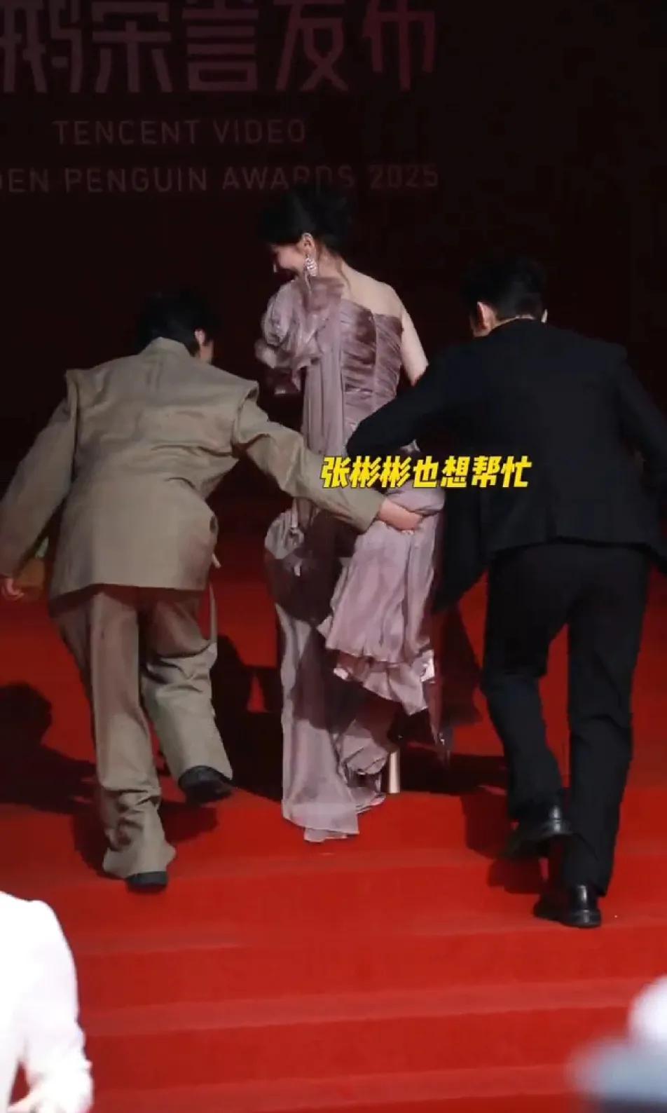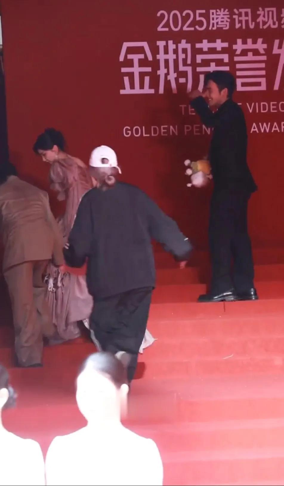 最怕张彬彬这样的,人笨还特勤快。导演正帮毛晓彤提长裙呢,弯腰躬身的,高度拿捏得刚刚好。张彬彬一看,赶紧也凑上来帮忙,从导演手里接过裙摆,就那么高高举着。毛晓彤当场就慌了,赶紧往下扯裙子:“哥,你举这么高,是想让我走光啊?”导演一看这架势,冲上来就上手敲张彬彬这大直男,那模样,活像老丈人收拾傻女婿。最后还得是导演接过裙子,稳稳帮毛晓彤提着走完红毯。看导演那熟练劲儿,张彬彬也明白自己为啥挨揍了,只能捂着嘴在后面尴尬地笑,脸都红透了。