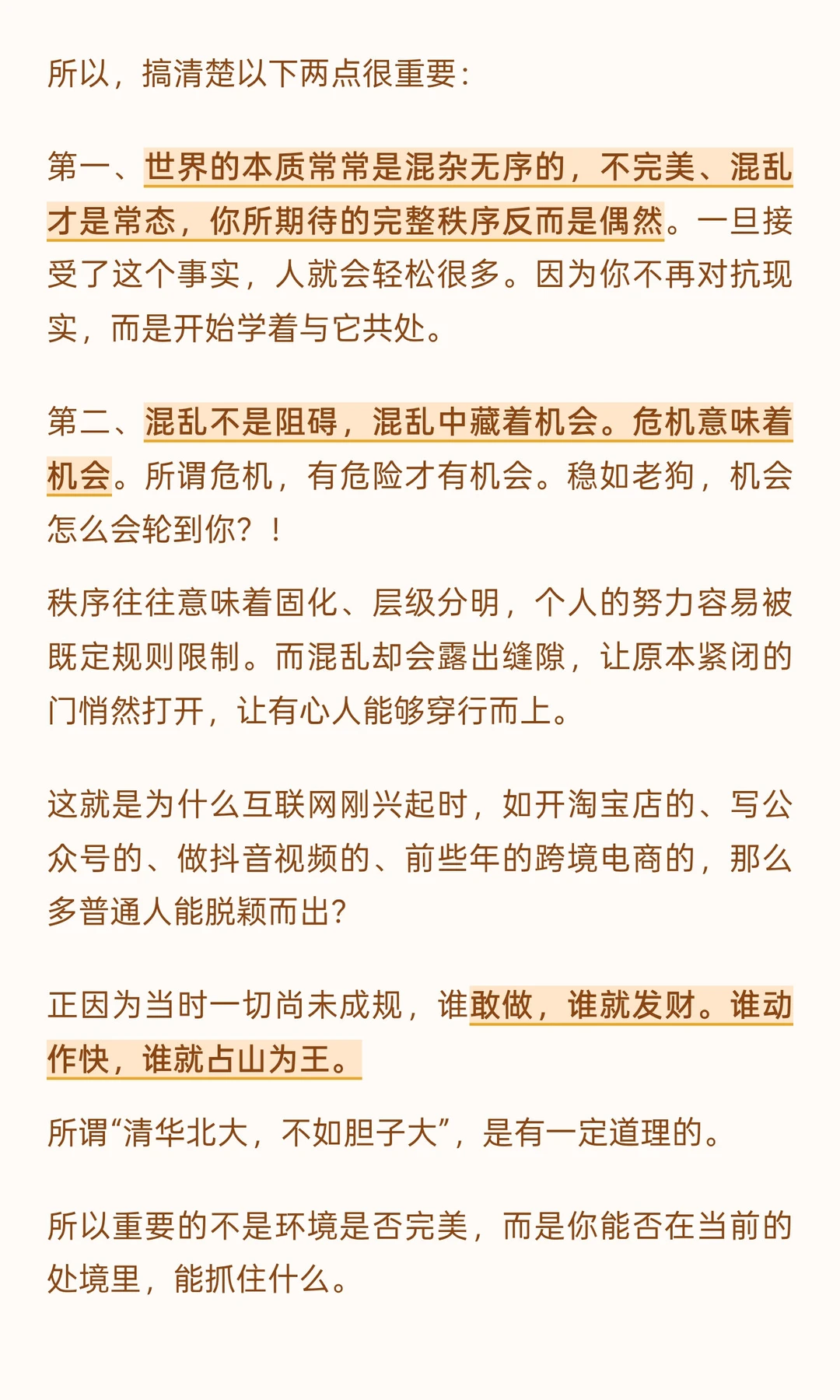职场不开心时,选择离开或隐忍,取决于对目标的清晰认知。 真正的高手不因情绪而退场,而是抓住混乱中的机会。接 受不完美,抓住机会,才能在混乱中找到出路,实现个人价值。