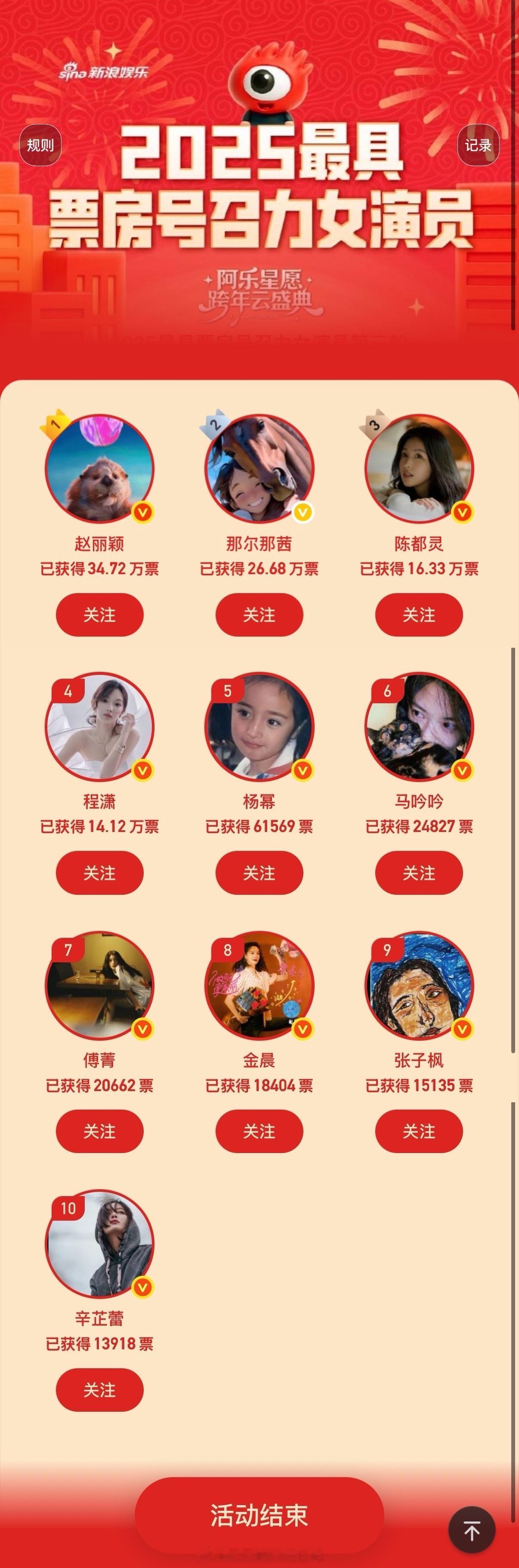 新浪举办的最具票房号召力的男女演员,最终夺冠的是张艺兴和赵丽颖