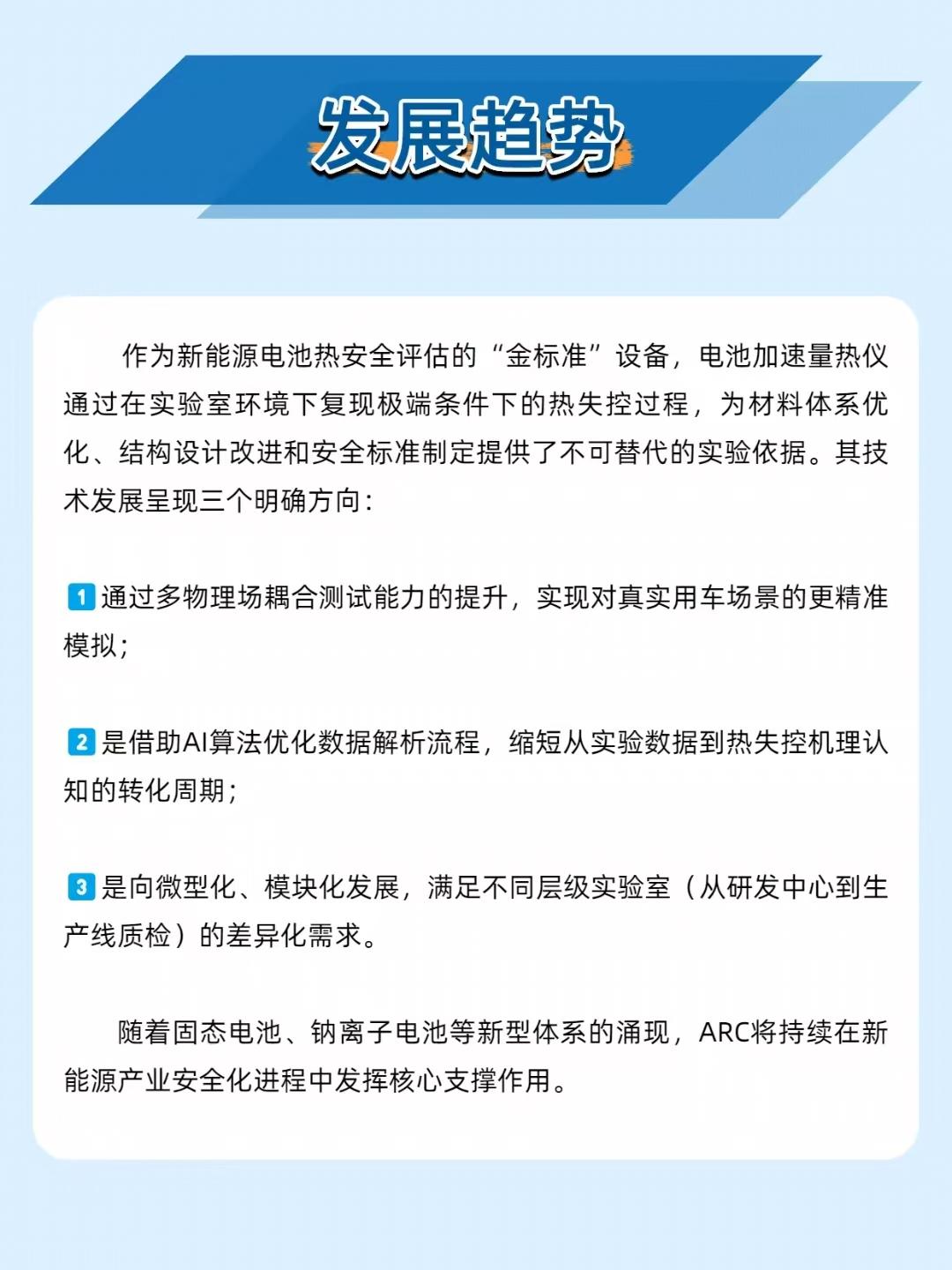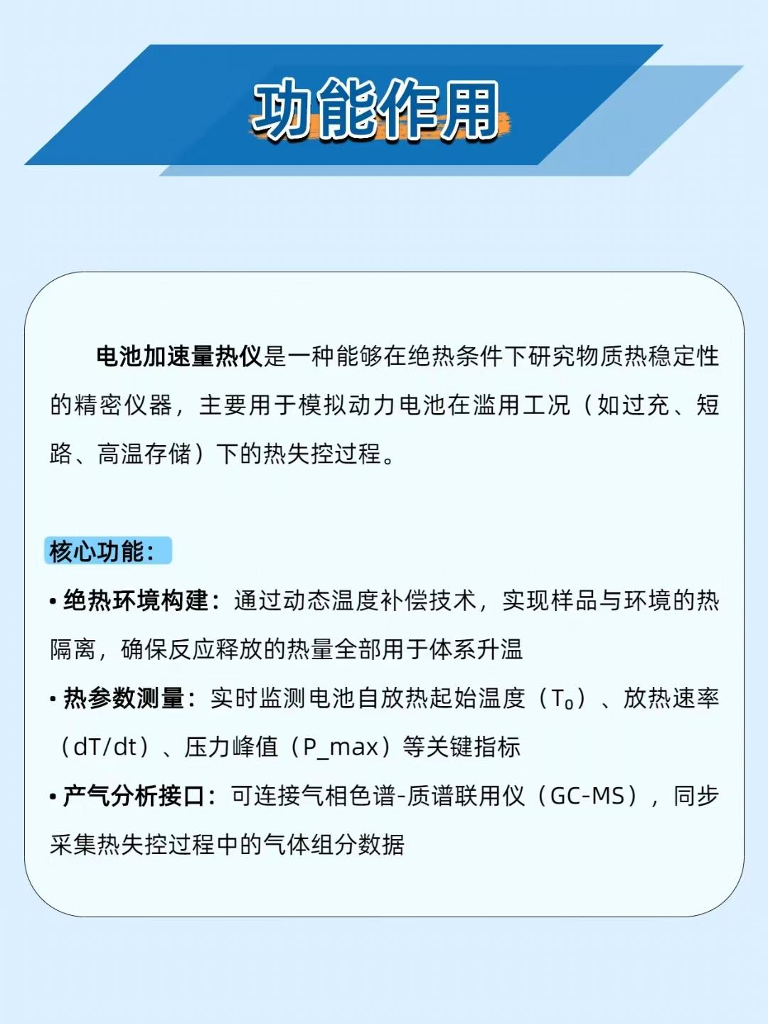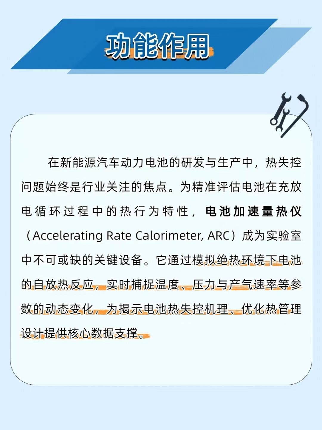 《新能源车电池 “发烧” 会炸?这设备是电池的 “绝热体温侦探”!》 新能源车最怕电池 “莫名发烧”→热失控→起火爆炸!而电池加速量热仪(ARC)就是揪出这个风险的 “实验室考官”—— 它把电池关在 “绝热小黑屋” 里(不让热量散出去),模拟过充、短路、高温这些危险工况,盯着电池啥时候 “烧起来”。 ————————————————————————————————— 它的硬核操作全是保命活: 🔒“绝热小黑屋”:双层舱体 + 真空隔热,让电池放热全用来 “自我升温”,精准测它啥温度会失控 🕵️“发烧监测仪”:盯温度、压力、产气速度,连仪器能查失控时放了啥有毒气体 📊“安全配方师”:测出来磷酸铁锂比三元锂 “发烧起点” 高 62℃,加 1% 阻燃剂能让失控延迟 2.3 倍 ————————————————————————————————— 它是电池安全的 “金标准”:从选更稳的材料,到加阻燃剂、优化散热,都是靠它的 “体温数据” 给方案! 你们选新能源车,会特意问电池的热失控测试数据吗?评论区聊聊~