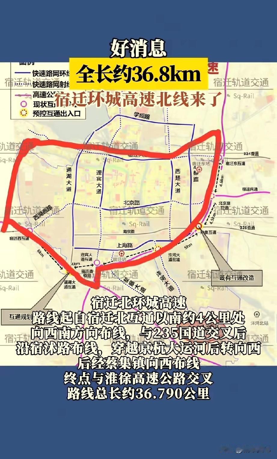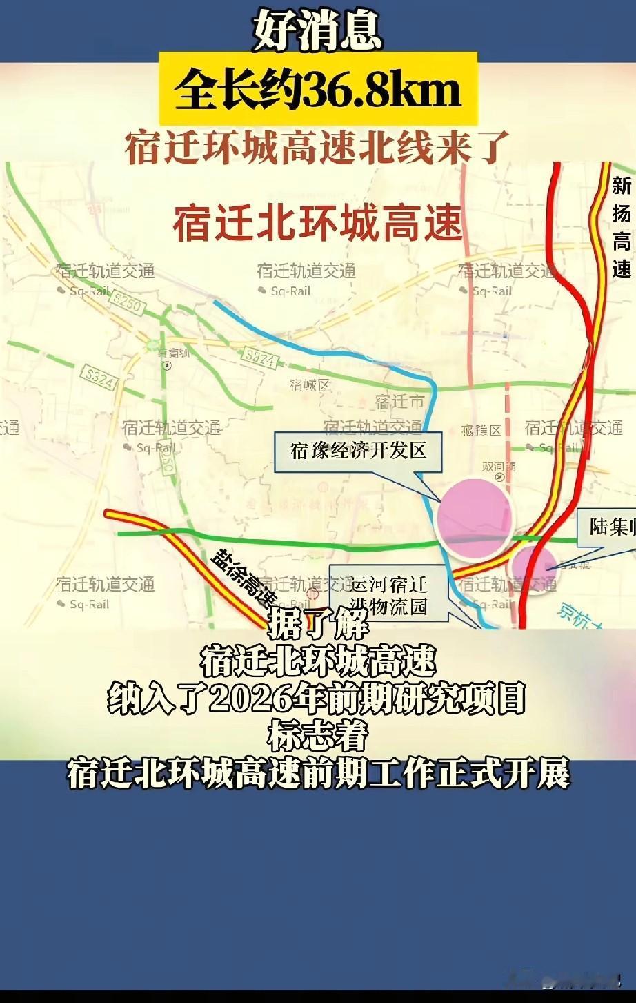 宿迁交通利好消息,之前我发布信息需要建一条北环高速,实现宿迁环城高速互联互通。 现在很多地级市都是环城高速公路。现在终于有消息说要建了。新扬高速和淮徐之间就是这段。 不需要绕南边很多路了。 往西到耿车接宿遂高速。宿迁交通规划