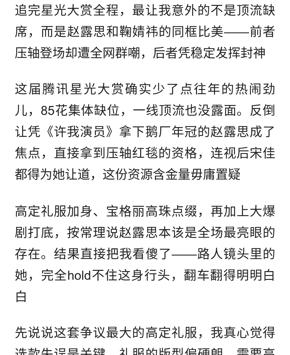 星光大赏比美修罗场!赵露思压轴翻车,鞠婧祎稳赢真不是偶然