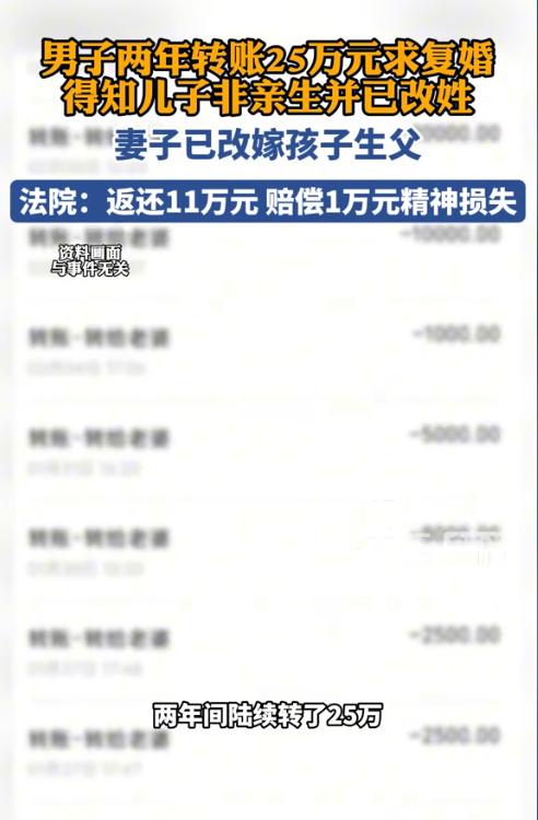 “太离谱了!”山西孝义,男子得知前妻婚内出轨,生的儿子也是别人的后,还是选择和前妻复婚,甚至给前妻转账25万元。2年后,男子得知儿子早就改成了生父的姓,前妻也嫁给了对方,深感被骗,果断提起诉讼,要求前妻还钱,还要对方赔偿精神损失费,可法院并未支持其全部诉请。(来源:长江云新闻) 据悉,穆先生和宋女士曾是一对恩爱夫妻,婚内二人育有一个女儿和一个儿子。 可在儿子出生后,宋女士的情绪一直不太好,经常因为琐事和穆先生吵架。穆先生以为宋女士是产后抑郁导致性情不稳定,所以平时都是忍气吞声,尽量让着宋女士。 2023年4月的一天,宋女士以感情不和为由向穆先生提出了离婚。尽管穆先生不愿意,但看到宋女士的情绪日渐糟糕,最终还是签下了离婚协议。 双方在离婚协议中约定,一双儿女都由宋女士抚养,穆先生每月支付3000元抚养费。 不过,女儿并没有跟着宋女士走,一直由穆先生照顾着,直到2024年7月份才去了宋女士那边。 虽然离婚了,但穆先生仍然爱着宋女士,且一直筹划着准备复婚,所以他每个月除了生活费,还会给宋女士转点生活费。 万万没想到,2023年11月份的一天,宋女士突然告诉穆先生,儿子其实不是穆先生的,是她和婚外情对象何某所生。 当时宋先生的确被打击到了,而且十分的气愤。可当他听到宋女士说和儿子的生父早就断了联系,又心软了下来。 此后,穆先生和家人又多次给宋女士转点生活费,2年多时间累计转了25万余元,宋女士期间也回转过2.9万余元,这让穆先生以为自己还有戏。 2025年7月份的一天,穆先生偶然发现儿子的社保卡名字改了,不再姓穆,改成了姓何。 追问之下才知道,宋女士其实与何某在2023年11月份就登记结婚了。 也就是说,这2年的时间,宋女士一直在欺骗自己。 被当了2年的冤大头,穆先生怒不可遏,他一纸诉状将宋女士告上了法院,要求对方返还25万余元以及儿子的抚养费,并赔偿精神损失费,共计29万余元。 穆先生认为: 第一,宋女士故意隐瞒儿子非亲生的事实,导致自己错误履行抚养义务,其行为已经构成欺诈性抚养。 第二,离婚后,为了复婚多次给宋女士转账累计25万余元,既然宋女士隐瞒已经结婚的事实,那这25万余元应当退还。 第三,宋女士婚内出轨,破坏了夫妻感情,应当赔偿精神损害抚慰金。 有人说,穆先生是真的傻,对方都出轨了,儿子也不是自己的,还期望能复婚,难道还要给别人养孩子? 还有人表示,这女的心太坏了,婚内坑了丈夫,离婚了还要再坑,这不是欺负老实人嘛! 《民法典》第1091条规定,有下列情形之一,导致离婚的,无过错方有权请求损害赔偿:(一)重婚;(二)与他人同居;(三)实施家庭暴力;(四)虐待、遗弃家庭成员;(五)有其他重大过错。 宋女士婚内出轨何某,并为何某生下一个儿子,其行为已经违背了公序良俗,对穆先生造成严重的精神上的损害。 因此,穆先生要求宋女士赔偿精神损失费的诉求是合理且合法的。 法院酌情判决,由宋女士赔偿穆先生的精神损害抚慰金1万元。 其次,宋女士故意隐瞒儿子非穆先生亲生的真相,使得穆先生把何某的儿子误当成自己儿子抚养,这构成欺诈性抚养。 因此,宋女士的儿子获得的抚养费属于不当得利,宋女士应当返还1万元。 第三,穆先生在离婚后自愿给宋女士赚钱,这应当属于赠与行为。 但考虑到宋女士离婚后没多久就和婚外情对象何某结婚,且已知欺瞒着穆先生,使得一直想要复婚的穆先生产生了错误认识。 《民法典》第147条规定,基于重大误解实施的民事法律行为,行为人有权请求人民法院或者仲裁机构予以撤销。 因此,法院酌情判决宋女士应当返还穆先生10万元。 综上,法院判决宋女士应当返还穆先生11万元,并赔偿精神损失费1万元。 对于这个结果,您有什么看法?欢迎留言交流。