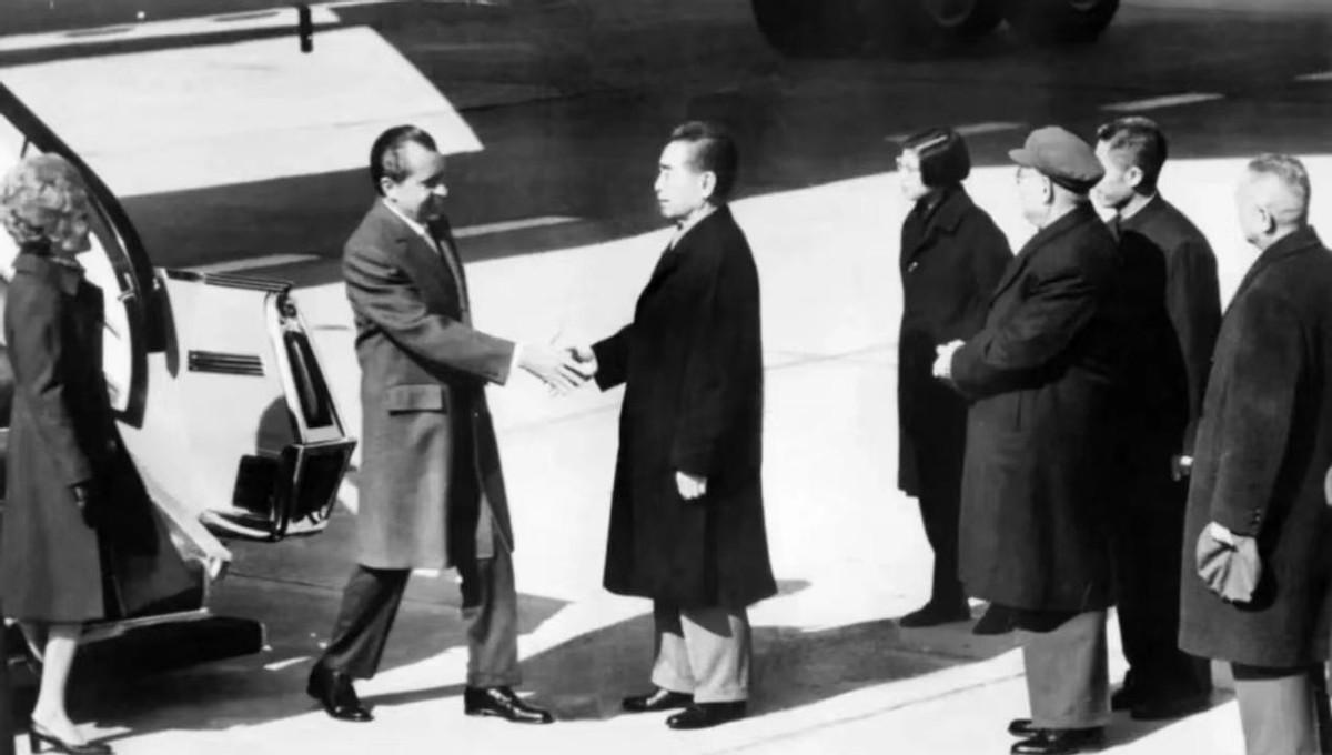 1972年2月21日上午,周总理亲自来到了北京机场,他这一次来是为了迎接一位特殊的客人。 三个月前的名古屋,美国乒乓球运动员科恩稀里糊涂坐上了中国代表团的班车。 车厢里的空气瞬间凝固,直到庄则栋递过一块杭州织锦黄山风光,科恩愣了愣,笑着回赠了一件队服。 这个被《朝日新闻》拍下的微笑握手,成了毛主席办公桌上那份邀请美国队访华批示的前奏。 谁能想到,小球转动大球的起点,藏在这样一个偶然的误会里。 那年7月,巴基斯坦的夏夜闷热得让人犯困。 基辛格捂着肚子说要去医院,却悄悄登上了飞往北京的专机。 钓鱼台国宾馆的灯光亮到后半夜,周总理和他围着台湾问题谈了17个小时。 一个中国的默契就在茶杯的起落间达成,后来基辛格在回忆录里写,他带的防弹玻璃被中方婉拒时,才真正懂了什么叫双重安保既有防备,更有信任。 机场的红毯被风吹得微微抖动。 尼克松走下舷梯时,主动伸出了手。 这个打破杜勒斯时期不握手惯例的动作,被相机定格成跨越太平洋的握手。 后来周总理在晚宴上说,这一握,让两国23年的隔绝有了温度。 毛主席会见尼克松时,桌上摆着的不是文件,而是一包用宣纸包着的茶叶,他指着说:尝尝我们的武夷岩茶,300多年的老茶树,一年也采不了多少。 尼克松捧着那包茶叶有点发懵,直到周总理轻声解释:这可是‘半壁江山’啊。 后来才知道,武夷山九龙窠那3棵母树大红袍,1972年总共才采了495克,送给尼克松的200克,差不多是当年产量的四成。 看到尼克松捧着那包茶叶时困惑的表情,我觉得周总理的半壁江山四个字,恰恰点出了东方外交的智慧不用强硬的语言,却让对方读懂分量。 上海锦江饭店的会议室里,《中美联合公报》的草稿改了又改。 台湾海峡两边的所有中国人都认为只有一个中国,这句模糊中带着坚定的表述,成了打破僵局的钥匙。 签字那天,尼克松突然说想再喝杯武夷岩茶,泡开的茶汤红得透亮,像极了两国关系正在融化的坚冰。 那包4两武夷岩茶后来被尼克松带回了白宫,据说一直放在椭圆形办公室的书架上。 而机场那次跨越太平洋的握手,后来成了教科书里的经典。 从乒乓台边的偶然递礼,到谈判桌上的茶叶隐喻,这段历史最动人的,或许正是这种以柔克刚的智慧不用口号喊出立场,却让每个细节都藏着尊重与分寸。 就像那泡武夷岩茶,初尝微涩,回味却悠长,这大概就是大国交往该有的样子。