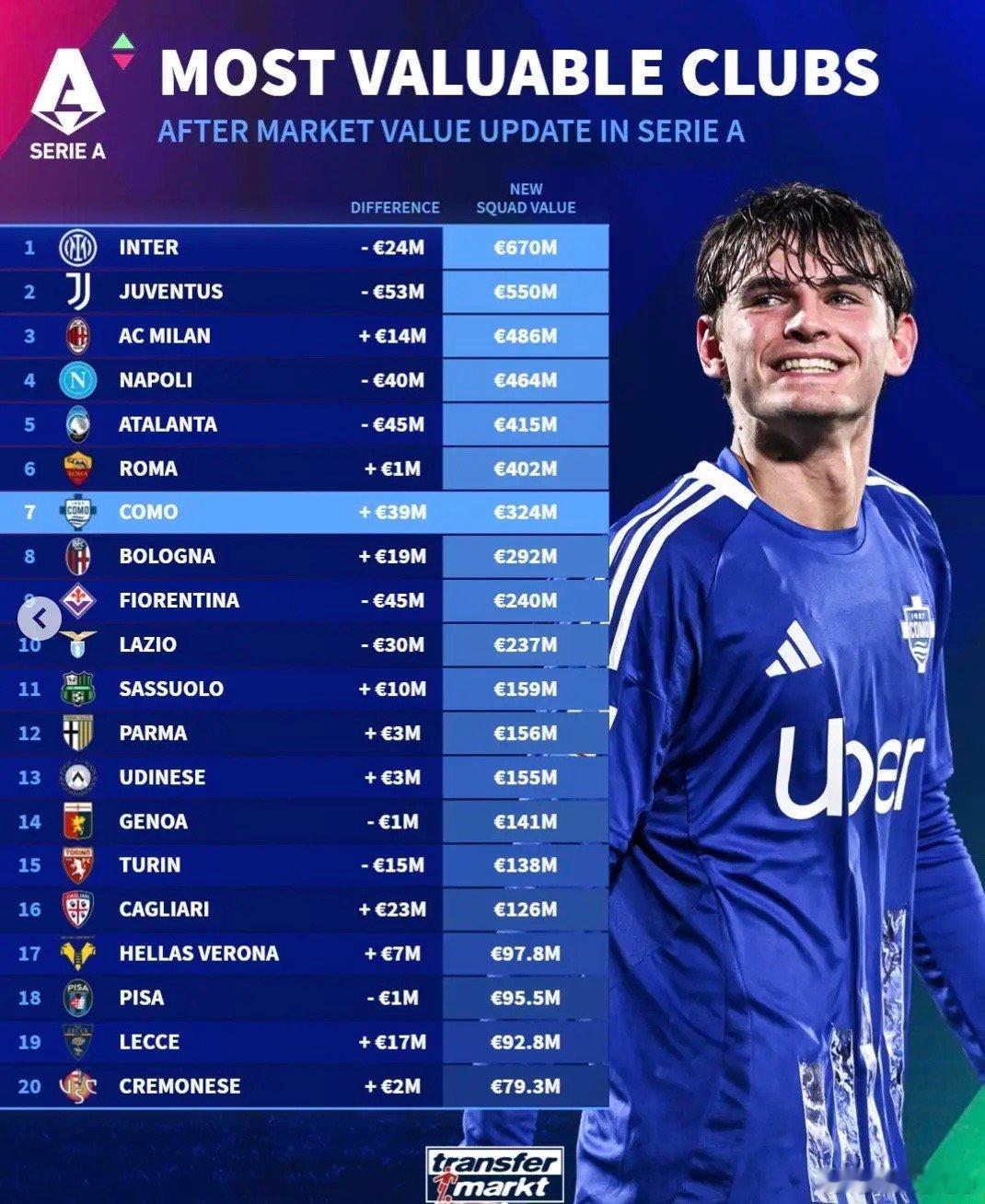 在俱乐部身价排行榜中 国米继续遥遥领先阿森纳9比8水晶宫博洛尼亚4比3国际米兰热点现场 但是下跌了2400W