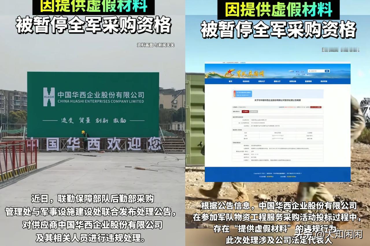 这回算是撞到铁板上了, 12月18日,联勤保障部队宣布将华西踢出全军采购供应商名单,理由是提供虚假材料! 这华西可是成立 75 年、年营收超千亿的老牌国企啊,居然在这事儿上耍心眼儿,实在让人意想不到。军工单子对它来说,本就只是小业务,却为了这点利益弄虚假材料,真是“捡了芝麻丢了西瓜”。 企业要想长久发展,就得老老实实、本本分分。搞这些歪门邪道,不仅砸了自己招牌,对银行授信、其他项目招标影响也大。在军队采购这块,忠诚和实在才是关键。大家说,这华西是不是太不应该了?你咋看这事儿呢?