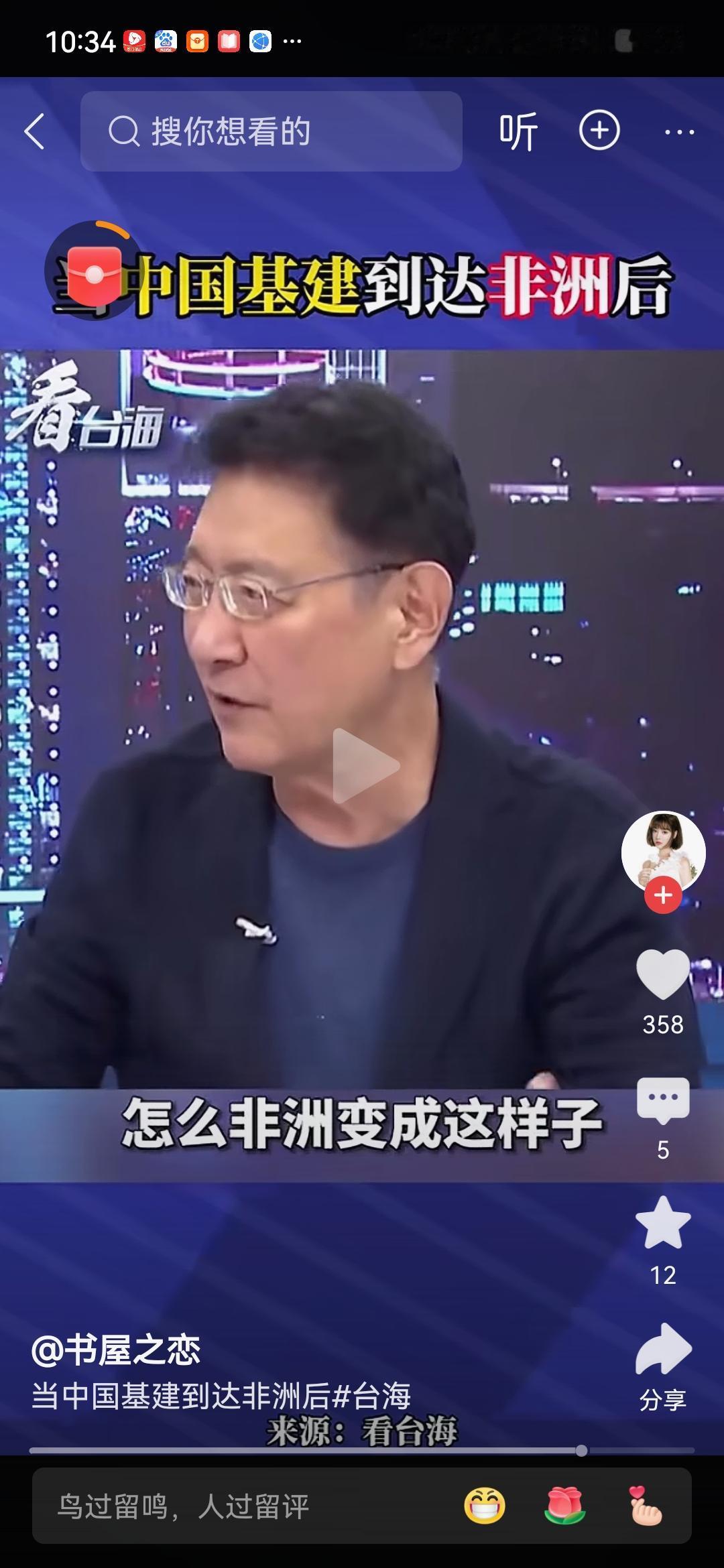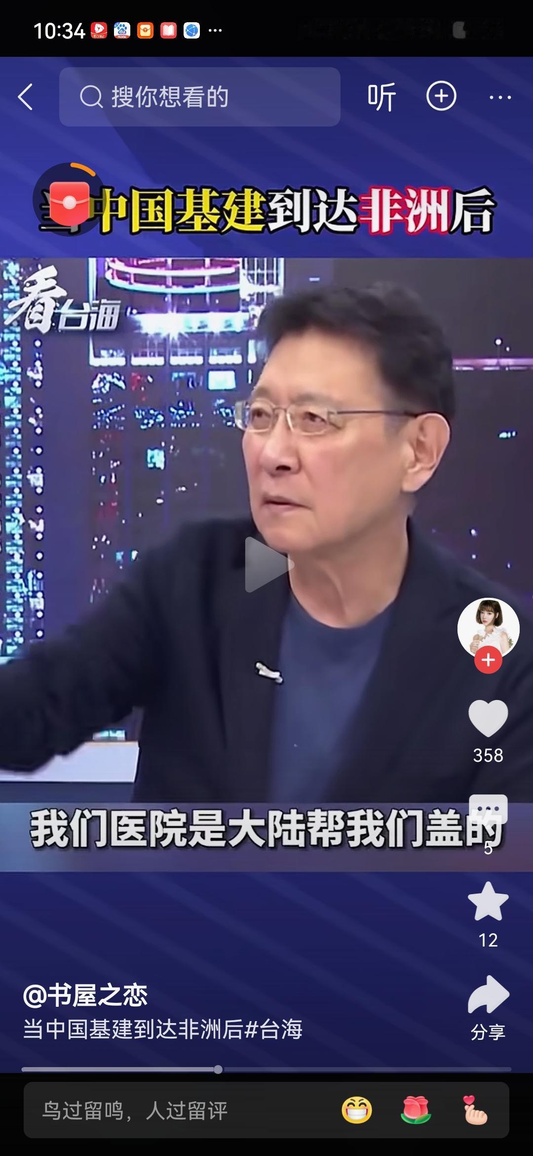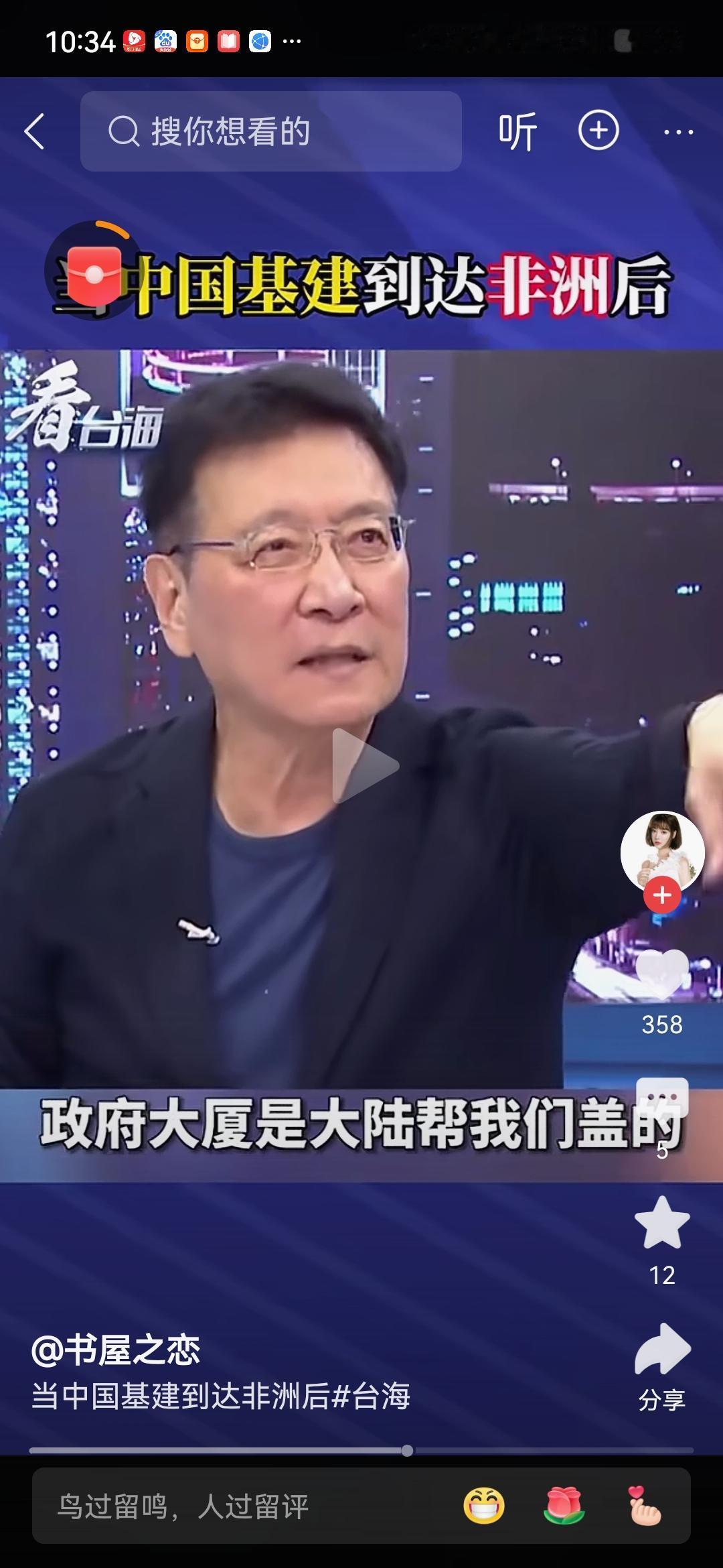 赵少康说:“我到非洲,吓死了!当地人指给我看:医院大陆建的,政府大厦大陆建的,这条路叫上海路 ,非洲怎么变成这个样子?”