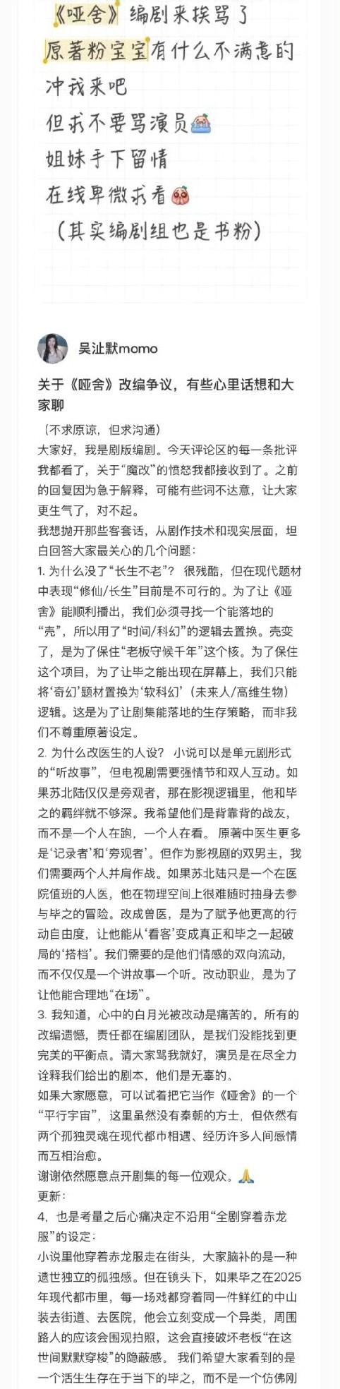 别骂编剧了,他道歉时说的“为过审”,是半句真话。 你发现没? 《司命》的修仙界成了星际文明,《哑舍》的古董魂穿成了赛博机械。 它们像约好了一样,把神仙道士的袍子扒下,强行套上白大褂和机甲。 因为审查红线就两条:“架空历史”和“封建迷信”。 制作方手里只有一把叫做“科幻”的刷子,把一切描摹成“未来科技”。 古物有灵? 那是高科技全息投影。 修炼飞升? 那是基因改造的成果。 于是你记忆里的少年店主,必须穿上西装变成霸总。 那间弥漫檀香的哑舍,也被拧上螺丝,变成冷光流淌的实验室。 这不是创作,这是一场为了拿到播出号码牌的集体伪装。 他们道歉,你愤怒。 但真相是,那双修改剧本的手,手腕上同样扣着无形的镣铐。 当整个流水线都在生产合规的“套壳”作品,你指责的究竟是一个工匠,还是那条越来越窄的河床? 我们失去的,何止是一两部剧的还原。 审查剪断的从来不只是仙侠的灵脉,更是你我记忆里,那段无需解释的相信。