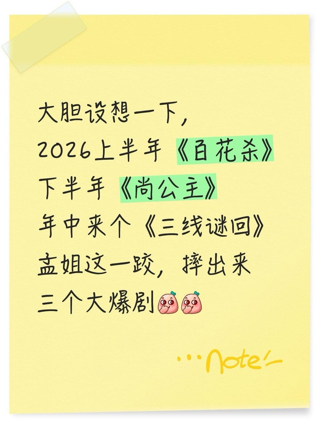 大胆设想一下,2026上半年《百花杀》下半年《尚公主》年中来个《三线谜回》孟姐这一跤,摔出来三个大爆剧孟子义|