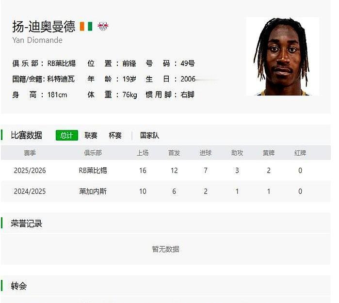 曼联又看上个19岁小孩,莱比锡直接要价超8700万镑。 先别搞混了,夏窗花约7370万镑签下的本杰明·谢什科,已经是曼联的人了,目前还在养膝伤,预计2025年12月中旬才能复出。冬窗的主目标是安托万·塞梅约,要是没谈拢,备胎就来了。 这个备胎就是莱比锡的19岁边锋迪奥曼德。这小伙本赛季德甲出场14次,打进6球助攻3次,数据是真顶。他2025年夏天刚从莱加内斯以2000万欧元转会到莱比锡。 莱比锡冬窗压根不想卖,明夏要价超过8700万英镑,这价格太吓人了,吓人。曼联这引援思路,摆明了就是专挖莱比锡系的年轻人。 谢什科还在适应期交学费,再来个高价小将,球迷耐心够不够用,这事儿。主帅阿莫林也确认冬窗会谨慎操作,不会因为非洲杯就慌乱引援。 其实曼联冬窗的优先目标是补强中场,朗斯的中场马马杜·桑加雷也在关注名单上,估值大约1500万欧元,边锋只是备选方案。 说到底,就是赌年轻人的未来,但这学费是真不便宜。