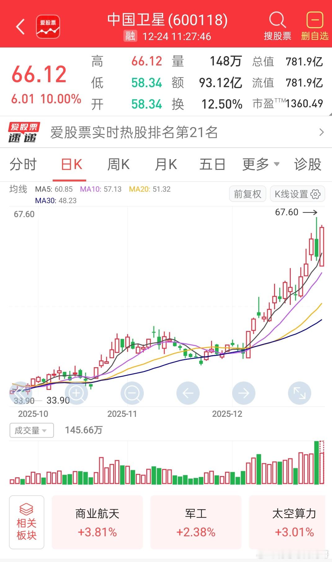 商业航天是真的猛阿,今天中国卫星反包涨停了,真是厉害阿,看来又卖飞了