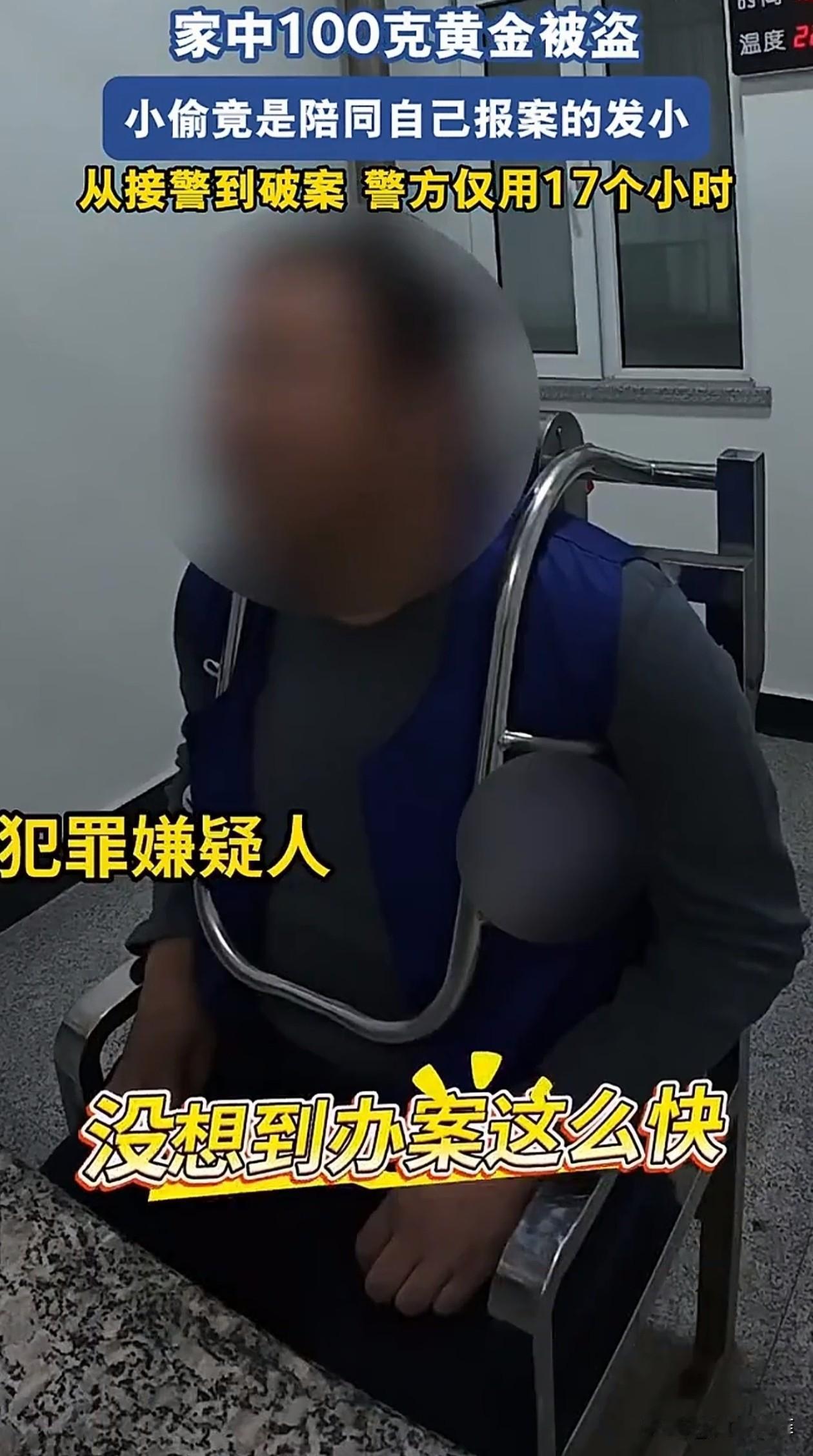 万万没想到!辽宁,一男子家中约100克黄金被盗,喊发小陪自己去报警,结果发小表现得过分热情,警方怀疑到他头上,之后经过调查,确认就是发小干的,典型的贼喊捉贼。 男子突然发现家里的100克黄金不见了,而门窗都是好好的,于是他第一时间联系了发小,让他陪自己去报警。 两人从小一起长大,关系很好,平时也常来常往。男子觉得有个熟人在身边能壮壮胆,也能帮着回忆下细节。 结果到了派出所,发小表现得异常热情,看起来比男子还着急,不停催促警方严查,还主动分析情况,打听案情。 警方很快就感觉出不对劲,发小的举动过于反常,陪朋友来的,哪有这么积极的,便对他起了疑心。 之后警方开始查,调了小区监控,又对比了男子家附近的行踪,很快就锁定了发小。 被抓了之后他也立马招了,说自己早就盯上了这些黄金,借口去男子家串门时,偷偷拿走了,然后以10万块的价格卖了。 他还说本来想过几天就跟男子坦白,没想到警方这么快就查到他头上了。 现在警方已经把黄金追回来了,从报警到破案仅用了17个小时,发小也被依法处理了,男子和发小这么多年的情分终究是没了。 丢了10万的黄金固然可惜,但更让人难受的是被从小一起长大的发小背叛。发小是除了家人之外最信任的人,结果对方却利用这份信任偷东西,让人心寒。 多亏警方眼尖,观察仔细,没让发小蒙混过关,而且短时间内就破案了,还追回了黄金,效率很高,特别厉害。 家里的贵重物品要放好,别轻易带外人到家里逛,尤其是涉及到钱财和隐私的地方,一定要多留个心眼。
