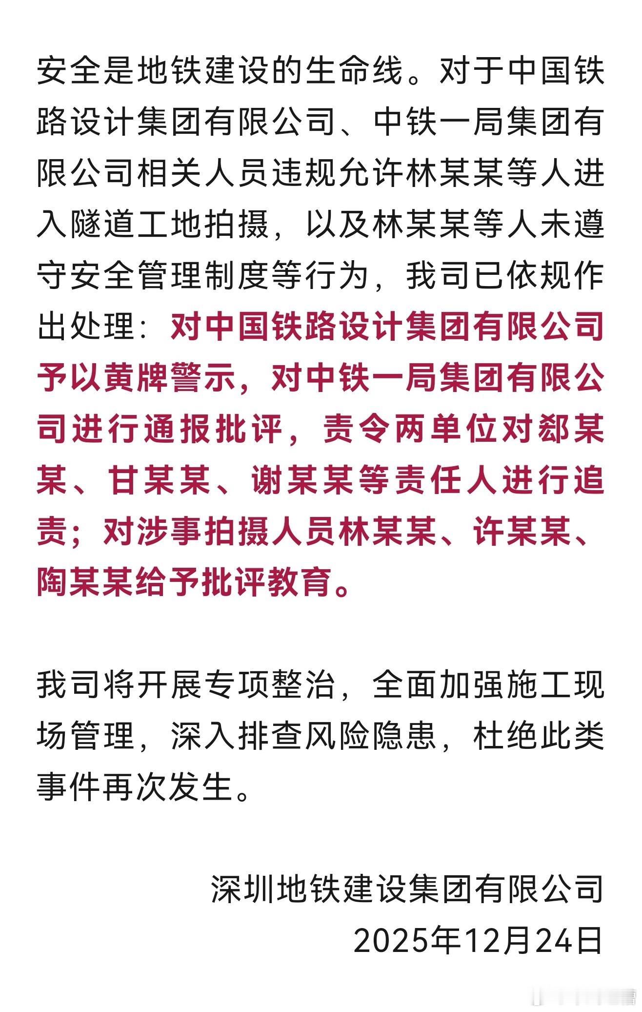 果然连累了所有人,但是真正拍摄的人只受到了批评教育可想而知,她们肯定不会吸取教训,甚至会暗自庆幸深圳地铁通报女子在隧道内拍照