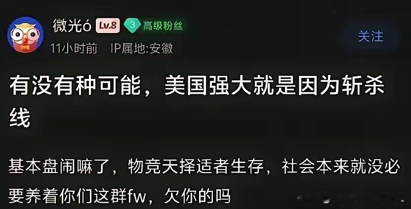 好家伙,万万没想到,像“美国斩杀线”这种反人类的事物,竟还有人替它辩护洗白。 他们声称这是美国强大的根源,是优胜劣汰的体现,能让美国保持活力,避免老龄化问题。 还有比这更双标的吗? 若是在国内,只要网上出现个别民众生活艰难的新闻,不论缘由,他们就会指责这是国家的责任、社会的问题。可国外出现类似情况,却被粉饰成“物竞天择”的必然规律。这种论调,不仅冷酷无情,更是对生命价值的选择性无视。 持有这种认知的人,或许该庆幸自己生活在中国——一个始终全力保障每个人生存权与发展权的社会。要是真身处他们所推崇的“淘汰法则”之下,只怕他们自己也会成为被“斩杀”的对象。 依我看,既然他们如此推崇“美国斩杀线”,那就送他们去那片他们心中的“理想竞技场”体验一番。瞧瞧在缺乏社会兜底的体系里,一个人是如何从“不一定无用”逐渐滑落到被系统剔除的“斩杀线”之下,又怎样在弱肉强食的规则中“逆袭”。 到那时,他们或许才会明白:一个文明的社会,真正的强大并非依靠冷酷的淘汰机制,而是让每个人都不会轻易被抛弃;真正的进步并非“物竞天择”,而是“物尽其用”——让每个生命都有机会绽放光彩,不让任何人跌破生存的底线。 而这,正是我们始终坚守的价值。