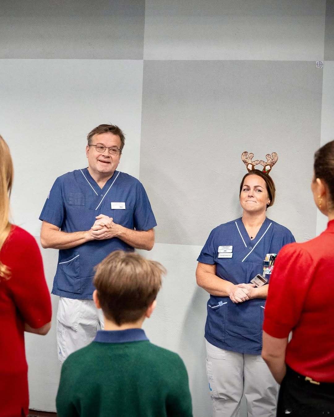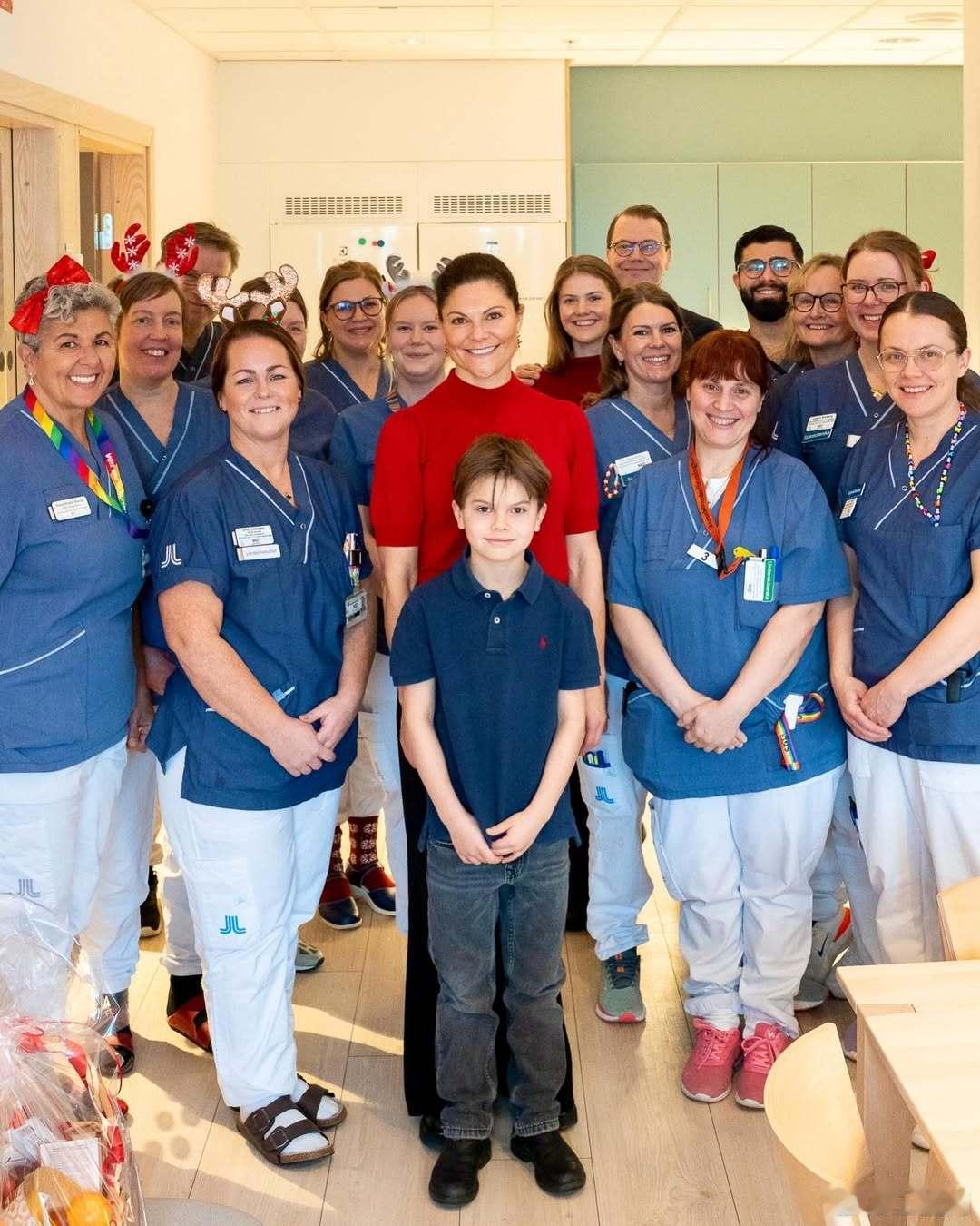 瑞典王室 🇸🇪12月24日,维多利亚女王储、丹尼尔王子、埃斯特拉公主、奥斯卡王子拜访斯德哥尔摩Södermalm的萨克斯卡儿童和青少年医院。祝那里的工作人员圣诞节快乐。世界各国王室奥斯卡王子和爹长的一模一样。