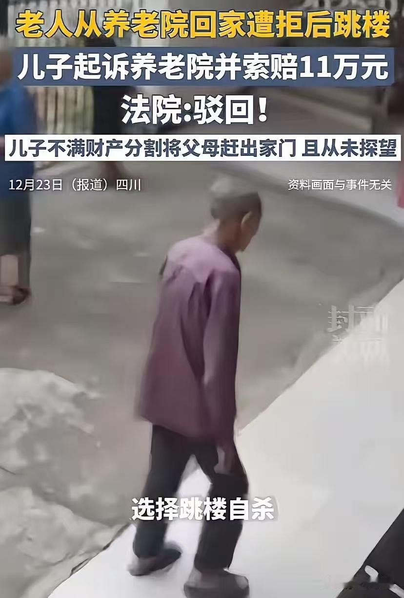 养儿防老简直就是笑话!四川成都,袁大爷因家庭纠纷与儿子商量换房,但是换房后,儿子又把房子出租,导致自己无家可归。又因为自己患有高血压、糖尿病、高血脂、抑郁症等多项疾病,被儿子和老伴送到养老院。 某一天老人在养老院想看奥运会,他说一年只有一次,但是工作人员拒绝了,因为其他老人不同意,于是他生气就走回儿子家中,谁知敲门半小时老人儿子也不开门,怕死他的家中。 之后回到自己之前租的房子里面并报了警,并且激动的说自己有房子被儿子折腾的住的地方都没有,民警劝袁大爷冷静,好好与儿子协商,不要有过激行为就离开,谁知民警走后老人就跳楼了! 事后,老人老伴儿和儿子不愿意了,认为是养老院拒绝换台,让老人精神受辱,才想不开自寻短见,要求养老院赔偿11万元。法院这样判! 法院言语也较为生硬,但并未超出一般人的容忍范围,不能认定袁大爷的自杀死亡与养老院工作人员拒绝更换电视频道存在因果关系。 综上,最终驳回了袁大爷妻儿的全部诉请。 一审判决后,袁大爷的妻儿表示不服又提起上诉,但仍以失败告终。 老人身体不舒服,有心理问题不是多加关心和照顾反而拒之门外,良心被狗吃了。这个不孝子还有脸去敲诈敬老院的钱,应该判这个不孝子遗弃罪。 人性有多么偷懒和自私在这里具象化了,有老伴儿,有儿子,还有房子,能自理,却独自在养老院生活,真是好有爱的一家人啊! 看的我泪流满面,老人太可怜了,他该有多么绝望才走上那条路。但凡儿子给他一点点关爱,老人也不会走上那条路! 建议老年人手上不管有多少财产,必须等自己走后才可以给家属,不要提早给,否则忘恩负义的人多了。养儿防老 养儿大实话