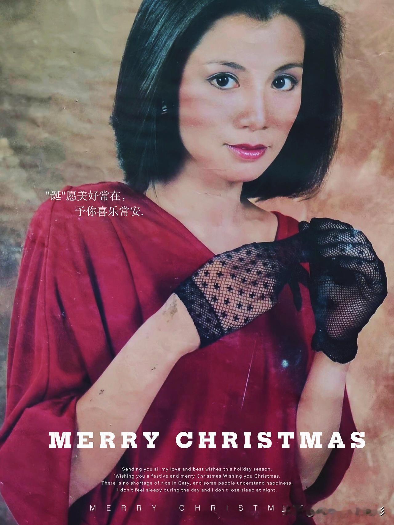 🧡永远的翁美玲🍎 平安夜的灯,亮了。 旧照里的她,眉眼含笑。 粉衣轻软,帽