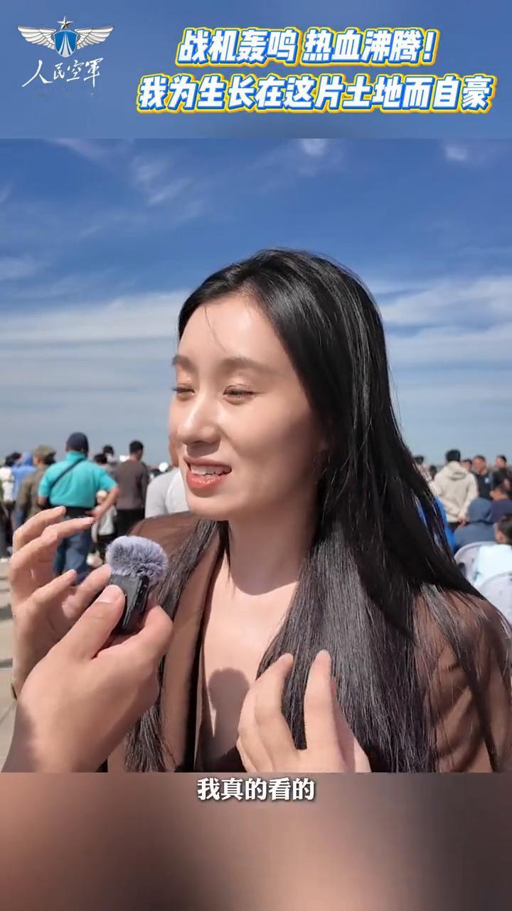 以前都只是在电视上看到,这是第一次来到现场,就是那种听到战机在耳边轰鸣,看到它升空的震撼是直抵心坎的,而且有一瞬间特别热血沸腾。 我是在唱,现在突然觉得大国重器这个词变得很具象化了,刚刚有一个画面真的看的热泪盈眶,就是在战机平稳的降落,从面前划过的那一瞬间看到现场的很多人,大家都把双手举起来了,开始欢呼,能透过玄关看到里面的飞行员特别骄傲的跟大家举起大拇指。 就那一刻,我觉得我是生长在这片土地上而感觉到很具象化的自豪,也希望我们的国家越来越好。