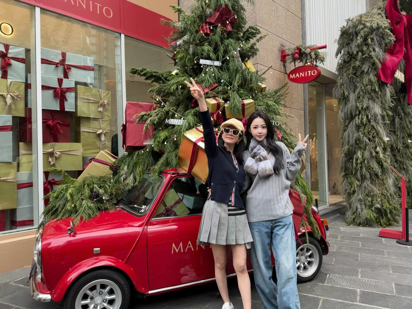 陈妍希圣诞晒照,幸福就是和姐妹和家人一起,照片中还出现了和周扬青的合照,以及儿子