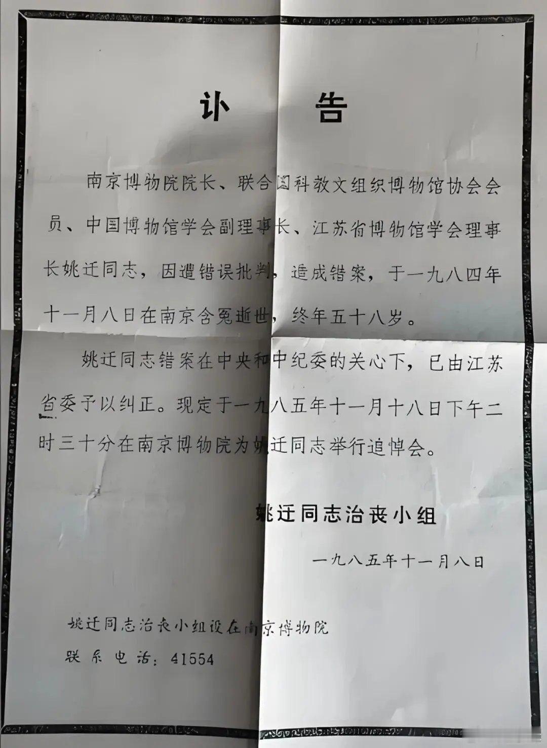 39年前的那个冬天,南京博物院的一间办公室里,一位院长手握一本《文物保护法》,用生命为代价,向那个时代的荒诞发出了最悲壮的抗争。他叫姚迁。他是真正的文博脊梁。1962年调入南博,主持编纂了《南朝陵墓石刻》《六朝艺术》等大量珍贵文献。他为人正直不阿,面对当时一些“老同志”以权谋私、长期占用馆藏珍贵字画(如仇英、文徵明真迹)不还的情况,他没有选择沉默。他拿着借阅清单一次次上门催讨,哪怕得罪权贵也在所不惜。因为这份“较真”,厄运降临。他们先诬陷他贪污,查无实据;再诬陷他作风败坏,依然查无实据;最后,他们利用一篇本属于下属、却被擅自署上他名字的鉴定文章,颠倒黑白,构陷他“学术剽窃”。更令人痛心的是,《光明日报》在未作核实的情况下,于1984年8月连续发文点名批判,将他钉在“以权谋私”的耻辱柱上。把名誉看得比命还重的姚迁,在巨大的舆论压力和绝望中,于1984年11月8日自缢身亡,年仅58岁。苍天有眼,公道自在人心。1985年,中纪委调查组进驻,最终认定报道失实,姚迁获彻底平反。《光明日报》也刊登了检查,向其家属道歉。姚迁先生走了,但他留下的警示从未过时。他用生命告诉我们:文物是国家的瑰宝,不是私人的玩物;原则是生命的底线,不容权力的践踏。致敬姚迁,真正的护宝人。🕯️