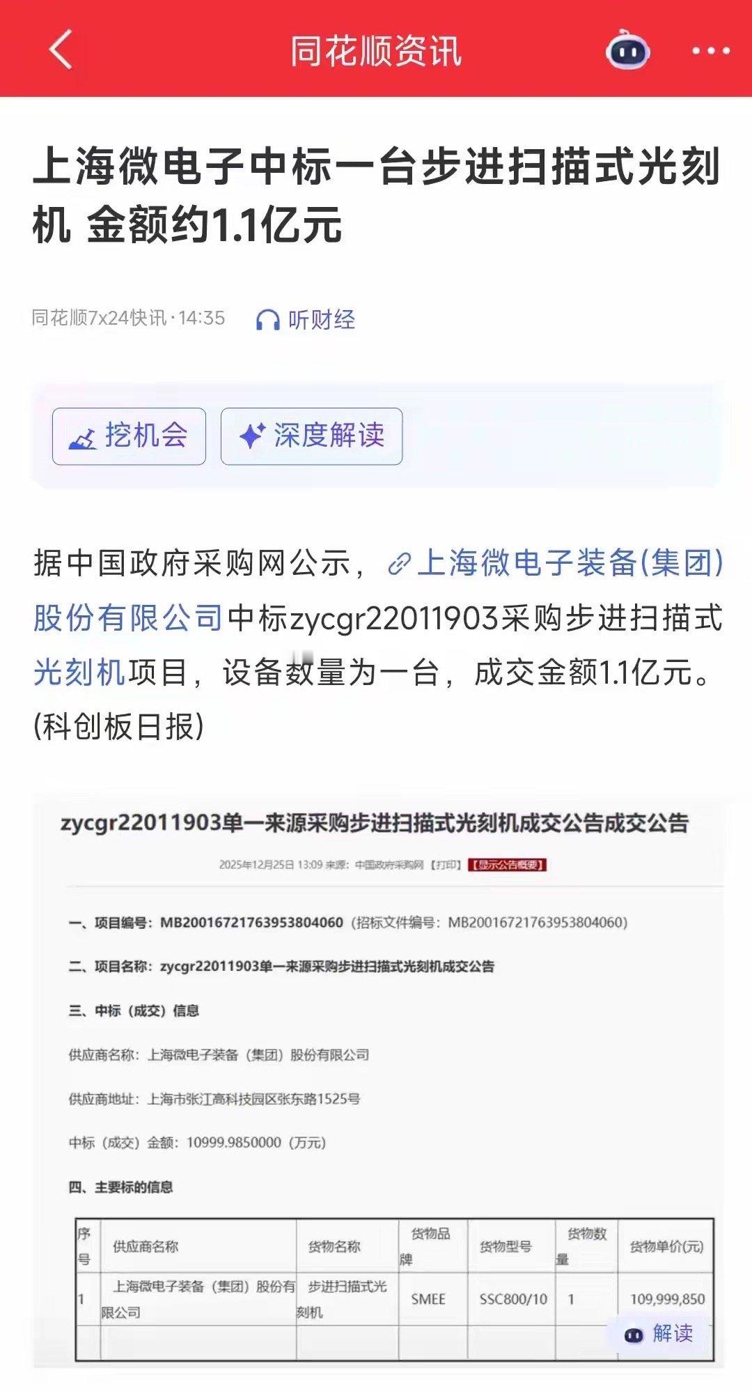 上海微电子利好消息公司中标一台步进扫描式光刻机中标金额约1.1亿元标志着国产替代逻辑强化直接利好国产光刻机产业链相关概念股:创元科技,美埃科技,张江高科阿为特,海立股份,苏大维格,欣中科技富创精密必须提醒的是,有利好不一定就会涨,一切要看市场的反应。以上提到的个股,仅作为信息分享,方便大家取用。一定要充分了解市场风险,谨慎决策。