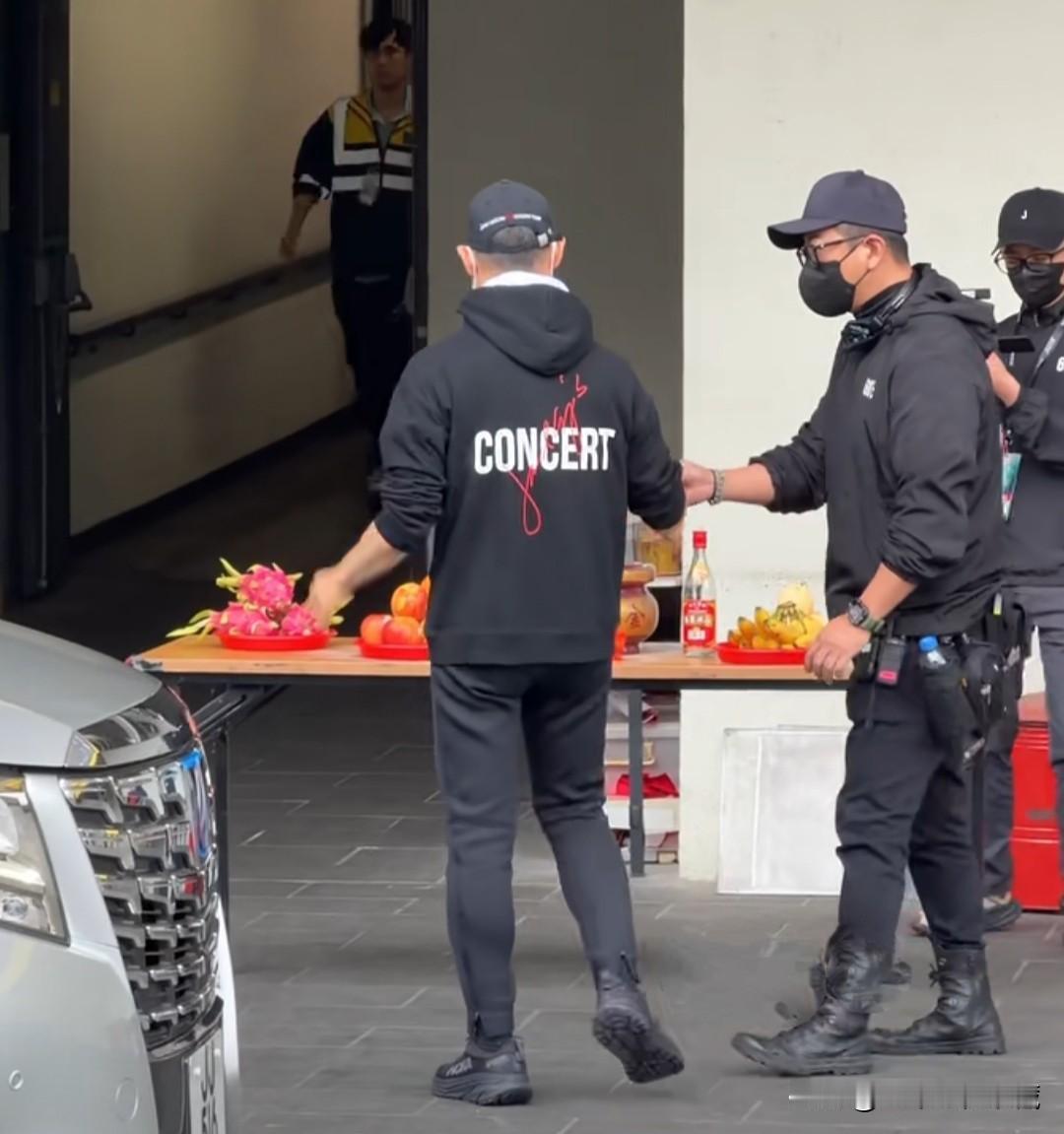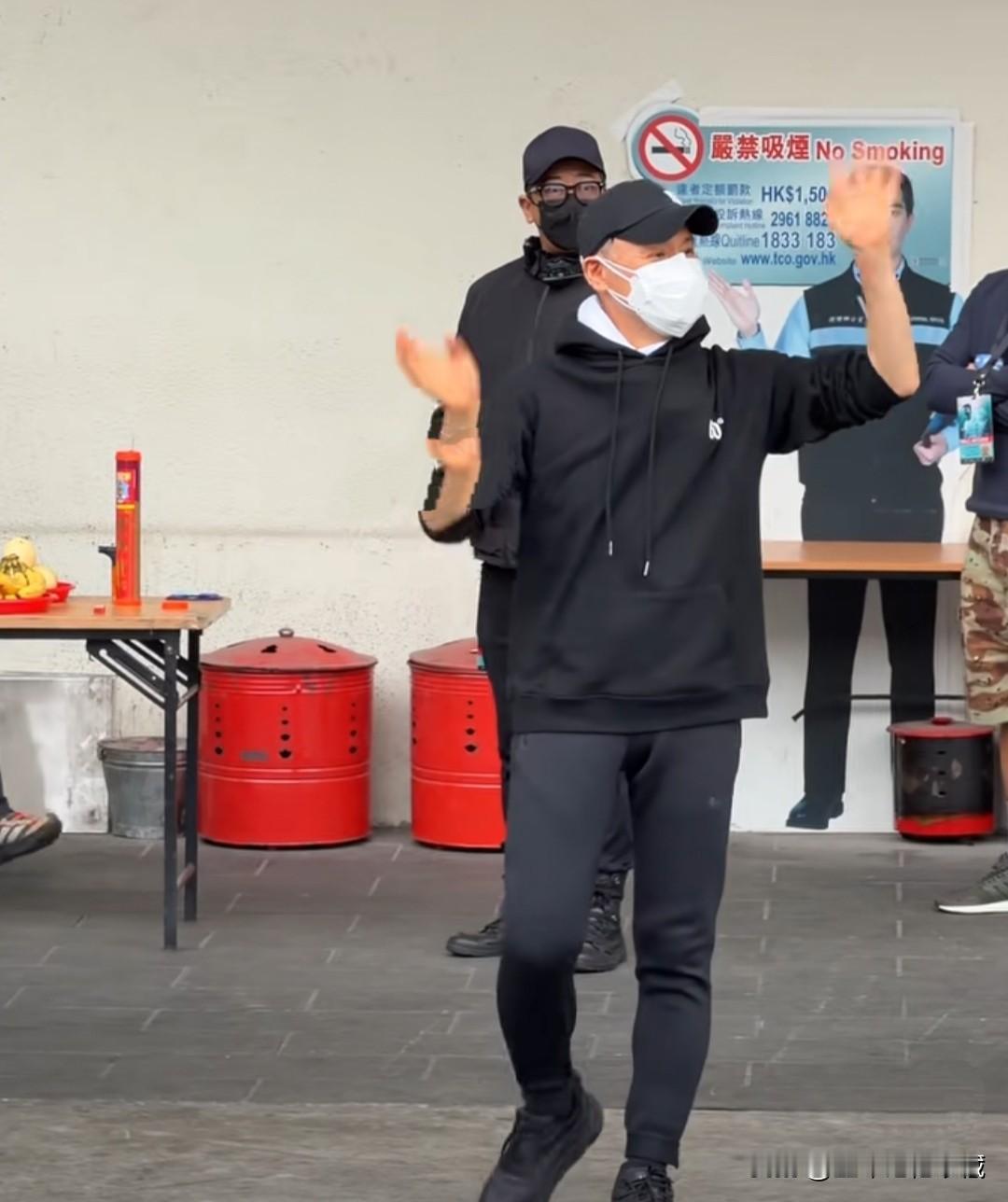 歌神张学友现身红磡体育馆,开始,他戴着棒球帽,一身紧身运动套装,戴着口罩,看着依