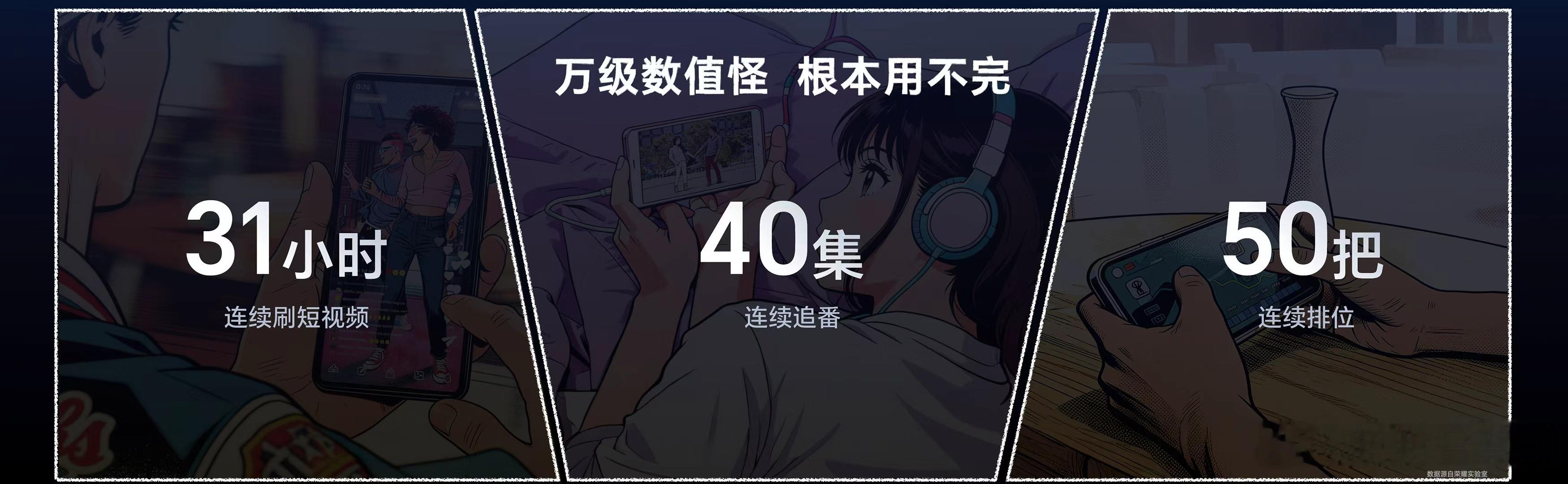 不怕万一,就怕10000毫安时!荣耀WIN全系搭载10000mAh巨无霸青海湖电池,首次将行业电池容量带入“万级”时代。搭配荣耀都江堰电源管理系统和能效增强芯片HONOR E2,进一步强化续航体验;支持100W有线超级快充、80W无线超级快充、最高27W有线反向充电,快速补能,随时随地“从从容容”。荣耀WIN荣耀发布会荣耀WIN年度电竞最夯机