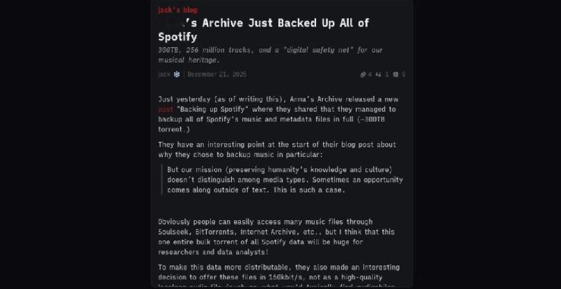 全球拥有7亿用户的音乐串流平台Spotify,近日惊爆8600万首音乐档案被盗取,被盗资料达300TB。激进组织Anna's Archive已承认责任,称其目的是建立“音乐保存库”,以防人类文化遗产因灾难、战争或预算缩减而消失,未来还将通过BT种子免费分享这些档案。 Spotify表示,经调查发现,是黑客利用第三方建立的用户资料窃走部分音乐档案,相关账号已被关闭,用户个人资料未外泄,目前已增加新的防护措施进行监控。