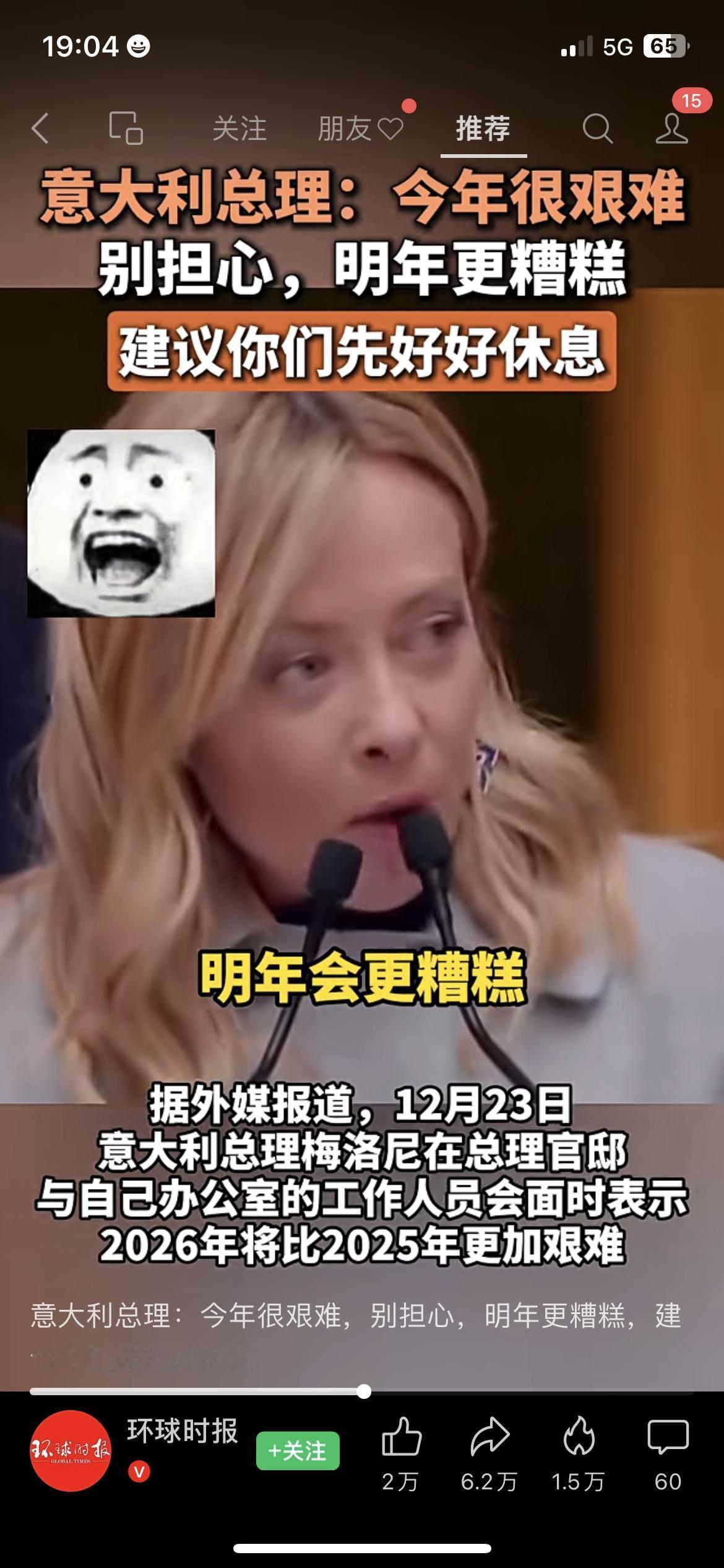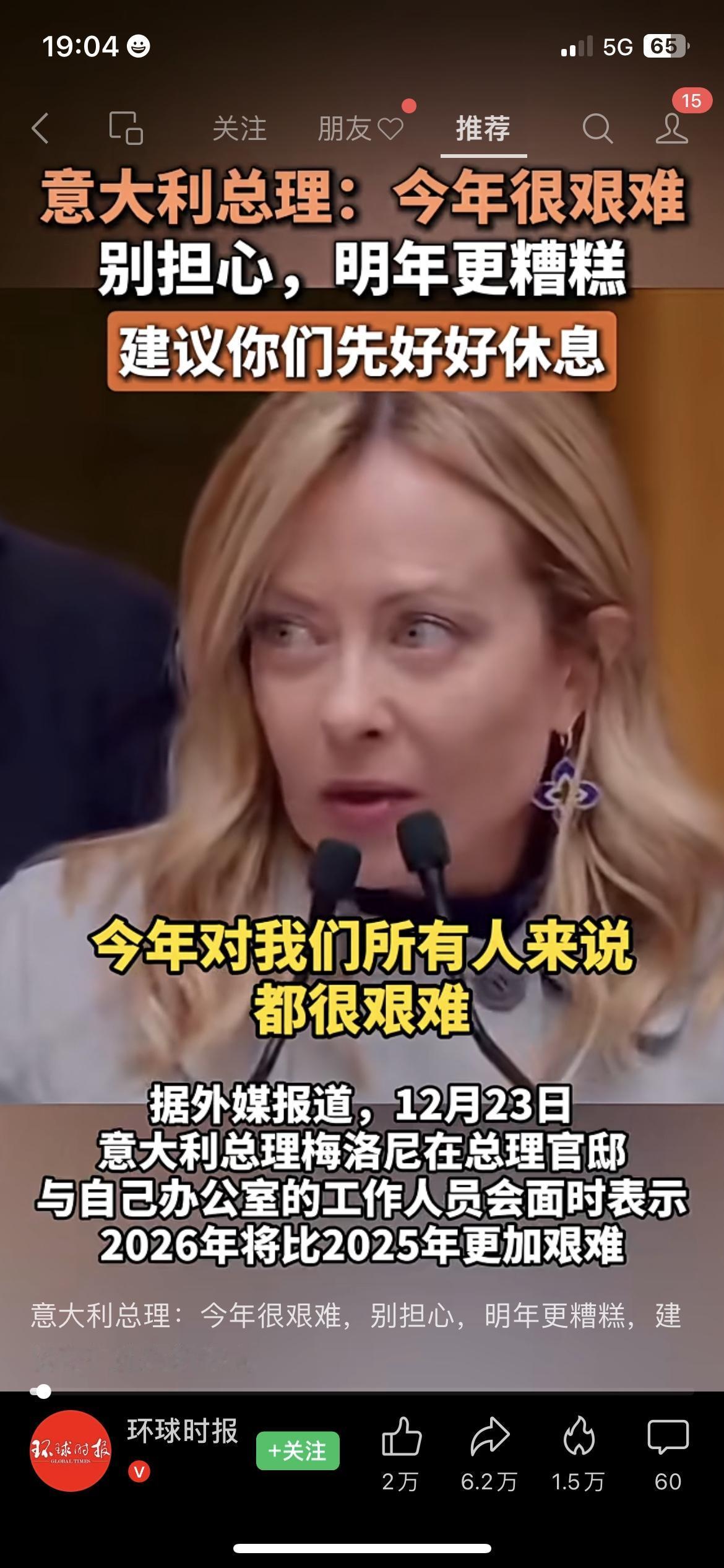 欧洲日子更难熬了!意总理坦言26年更艰难,普通人都慌了神 国际财经观察 刷到梅洛尼讲话的留学生小周 对着屏幕默默关掉了出游规划 意大利总理公开表态 2026年的经济处境,会比25年更艰难(来源:意大利政府发布会通稿) 罗马街头的咖啡店老板听完消息 擦着杯子的手顿了顿,默默调低营收预期 原本就承压的欧洲经济,又添一层不确定性 当地打工人都开始提前规划假期,暂缓消费 经济压力的连锁反应,已经落到普通人身上 你觉得欧洲经济困境会持续多久? 这波压力会影响中意的日常经贸往来吗?