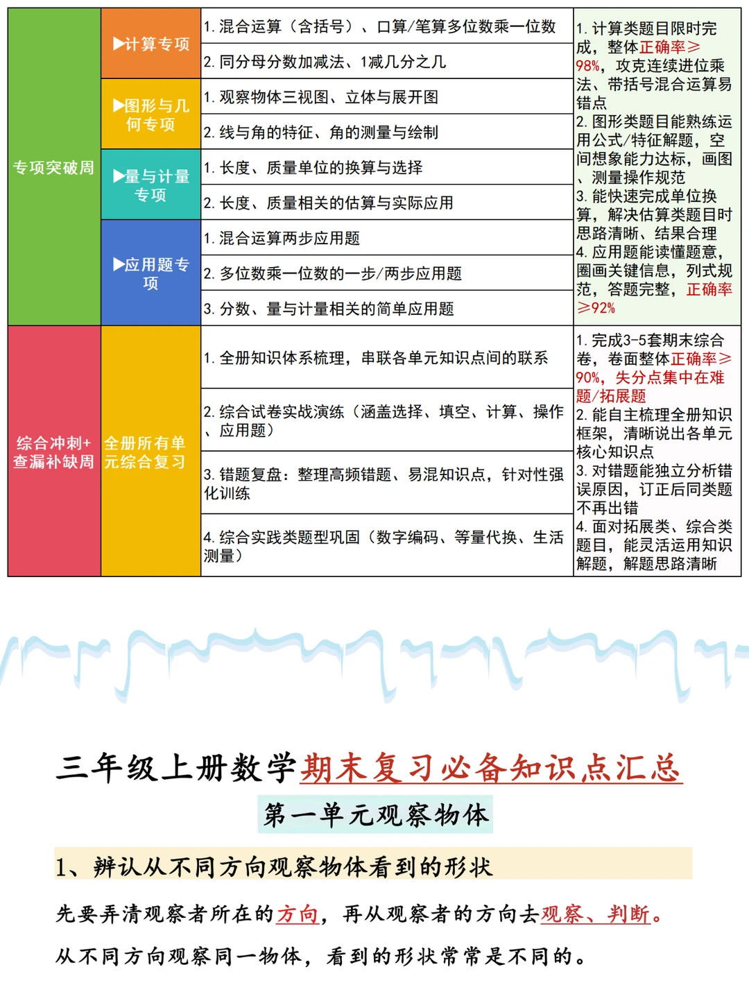 [暗中观察R]期末马上就到啦,三年级上册数学怎么复习才高效?这份适配人教版教材的复习攻略,家长和娃快收好!