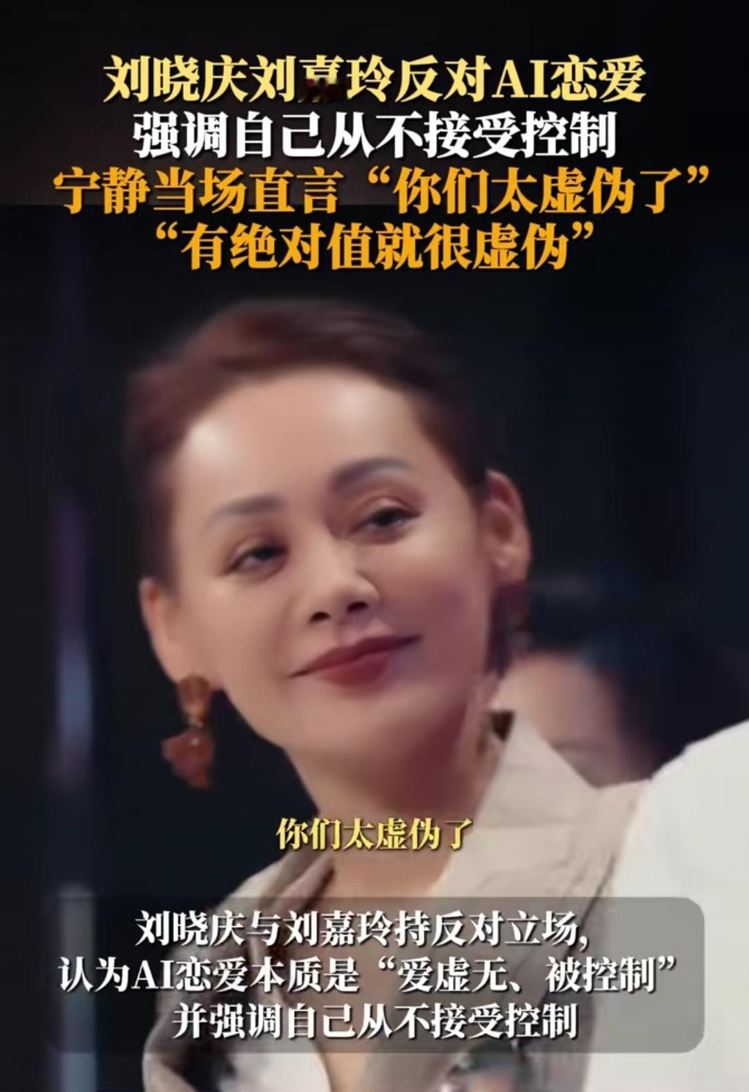 看《一路繁花》里聊AI恋爱,刘晓庆和刘嘉玲的反对理由听着特立独行,说不接受被AI控制、爱要真实,可宁静一句“你们太虚伪了”,瞬间把这场看似高端的辩论拉回了现实。 两位前辈觉得AI恋爱是“虚假的可控情感”,可现实里的感情,谁又没偷偷盼过对方能按自己的心意来?我们嫌弃AI的程序设定太死板,却又在亲密关系里,不自觉地想让对方符合自己的期待,这和“控制AI”又有什么本质区别? 宁静的直爽,恰恰点破了成年人的情感伪装:我们反对的从来不是AI恋爱的“可控”,而是不愿承认自己对情感掌控的渴望。AI只是一面镜子,照出了我们对爱既想要真实,又想要安稳的矛盾心理。说到底,爱从来没有绝对的标准答案,真实的心动和可控的安全感,本就是一体两面。