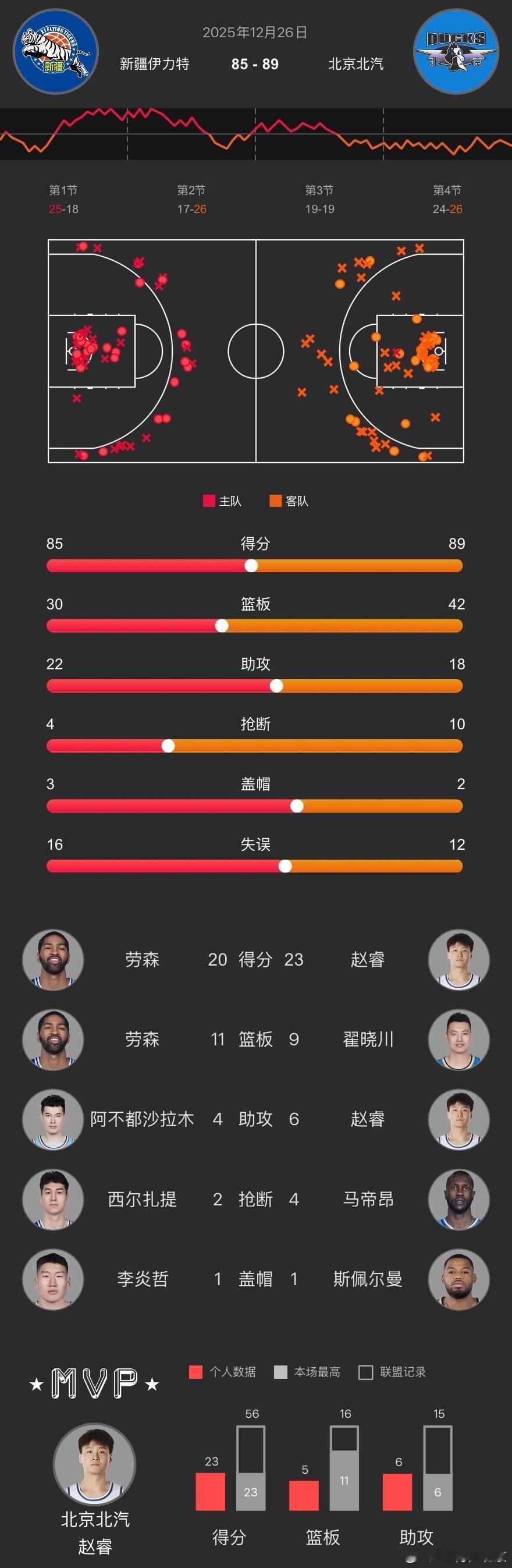 CBA常规赛第六轮、在客场以89-85战胜新疆、收获开赛六连胜!获得全场最