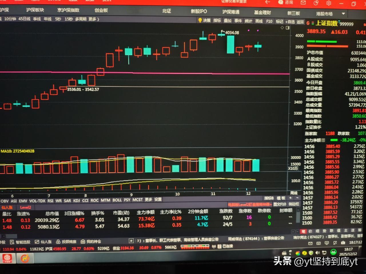 上周已经说明,从周线收盘看,跌破5周和10周线,本周周线收小阴线,指数仍被5周和10周线压制,且10周线走平。 但要看深成指及创业板却是三周红k反弹。让人会产生很多的臆想。 为什么会这么说?我们先从上证说起,周线看下周极易出现一根大阴线。目前,指数处在前期大阴线的一半之下,说明反弹无力受制于5周线和10周线的压制后极易走成下降三法。 所以说目前深成指及创业板很较强,从周线看。再从科创板来讲,我们看到了是一个平台式的反弹。另外,在周五的下午两点钟后,我们看到微盘股(880823)呈现了一边倒的下跌。且微盘股的周线也,来到了前期大阴线的底部,跌破近在咫尺。 从而能推断出在上证,微盘股科创板如集体下杀会把深成指,创业板拖入泥潭。 从空间上来看,4034-3816=218点,按1:1,3936-218=3718点。第二,按3040至4034的0.618,黄金分割位为3655点,这个是前期所提到的位置。 所以按下跌的空间幅度来讲,再到3718至3655点之间,就进入到买入区域。 我们再算一下时间,从深成指和创业板的10月10号调整55天,是本月的25号,从10月30号回调至11月24号为18天,那从12月9日回调18天,则为26年的1月5号(第一个工作日) 所以概括总结,近期来讲,25号和1月5号,指数如能在3700点附近,则进入时空共震买入。 真正的下杀,其实就那么两三天,所有的等待都是值得的。