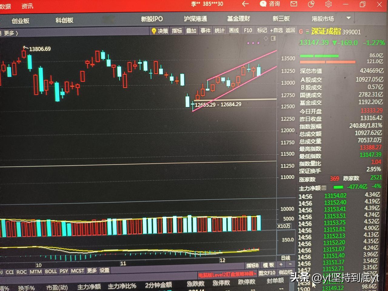 今天这就算是动手开杀了,方向选择出来了,不再诱人也不再墨迹。虽说下跌了27个点,收了中阴,个股的跌幅都不算小,跌停的家数也不少。 这一切都源于上证的上升通道被破坏掉了。虽说创业板和深成指表现的都比上证强。主要原因还是源于像易中天这样的大盘股在高位挺着,今天才有下跌的苗头,在他们的带领下,后面他们会紧跟上证的步伐,破坏掉上升趋势寻求二次探底。 在行情不好的条件下,很多拉板的票第二天都出现了低开低走的现象,这种骗炮的做法也验证了这仅是一次反弹而非反转向上,这种现象目前很普遍。 从最近文中一直提到控制仓位并减少操作频率,这个指导方针还是正确的。 今天走完后,目标应该就是对准了3816点,我们继续等待16号时间点的性质。 下面是上证,深成指,创业板,科创板的日线图