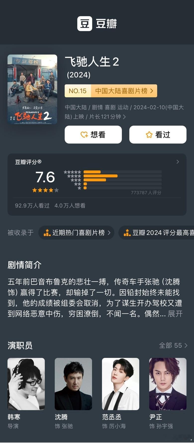 影讯《飞驰人生3》定档2026年春节。韩寒的电影,照例支持一下,希望保持前两