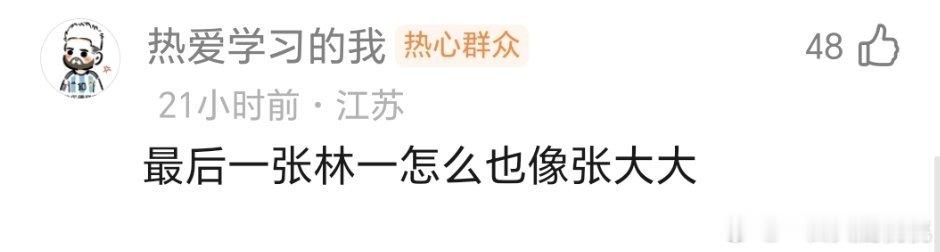 张大大 主要这个对比林一也一般,并没强哪去。或许可以找个别的角度