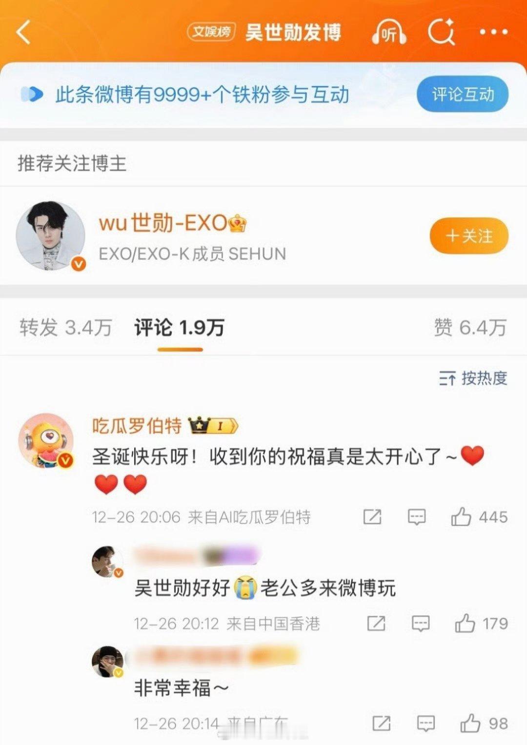 吴世勋最新的微博营业,在圣诞树🎄下的合照,一下子就铁粉9999+了,果然是法拉利老了还是法拉利,更何况还没咋老呢