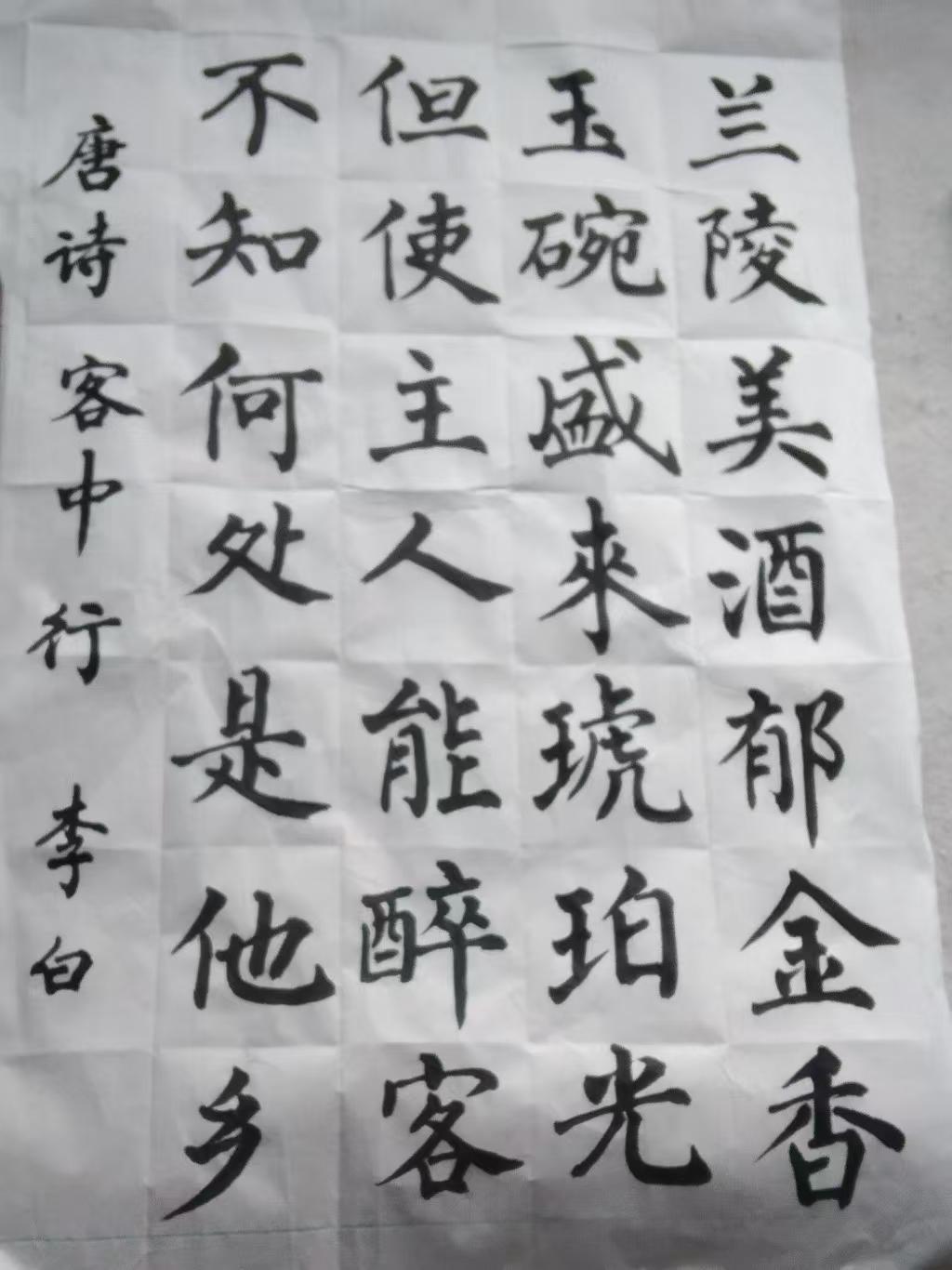 喜欢写字的朋友里,传来了一个好消息,在湖北省硬笔书法家协会第五次会员代表大会上,徐建强同志当选湖北省硬笔书法家协会主席团成员,卫然同志当选湖北省硬笔书法家协会理事。 两位潜心贯注于书画几十年,临摹创作都很有心得。 和他们相处的日子里,受益匪浅。得知这个好消息,自己也写一幅李白的诗,纪念、祝贺、鞭策自己。 兰陵美酒郁金香,玉碗盛来琥珀光~~徐建华书法 黄州籍书法家 微山籍书法家 黄石籍书法家 云梦书法家协会 荆门书法家