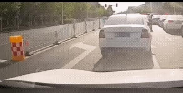 车撞上墩子了。此时此刻,骑电动车的人从从容容,开车的司机估计得连滚带爬,司机开的窝囊透顶。 让速不让道的话,司机就是个次责或无责,这下可好了,差点把自己送走,还有可能担责。 看来,这个墩子放这,还真的是很有必要的。